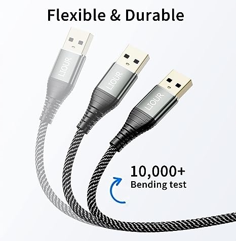 LIOUR USB 3.0 A to Male Cable 3ft/1m USB Male to Male Neylon Patch Cable 5Gbps Super Speed Golded Connector for HDD, DVD, Printers, Cameras, 1M Hard Drive Enclosures