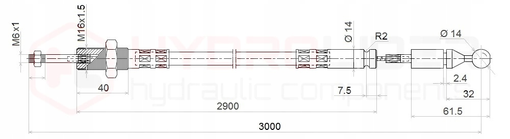 Кінець кабелю з боку розподільника: тяга з різьбою M6x1 і M16x1. 5 різьбовий корпус.