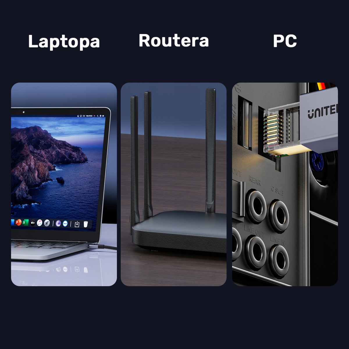 - Широка сумісність: працює з комп’ютерами, ігровими консолями, маршрутизаторами, модемами та комутаторами; зворотна сумісність із кабелями Cat 7, Cat 6, Cat 5e.