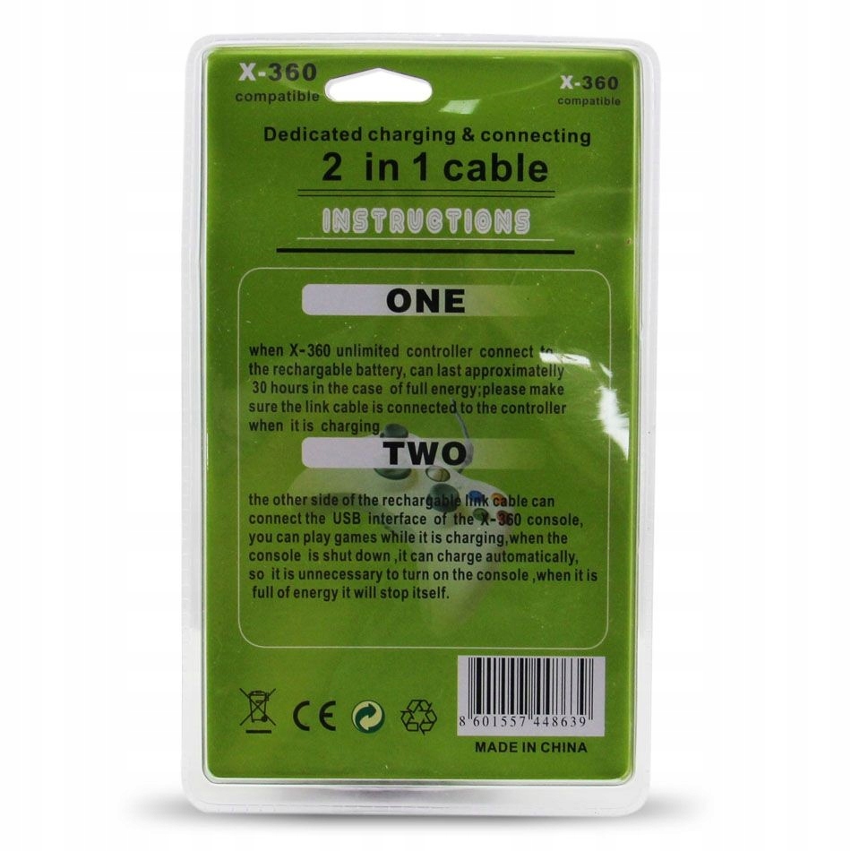 2 в 1 кабель (гра та заряд) використовується для відтворення та зарядки контролера Xbox 360. Немає проблем з вивантаженими акумуляторами. Нам більше не доводиться чекати, коли акумулятори зарядиться. Тепер просто підключіть кабель, і ви можете насолоджуватися грою.