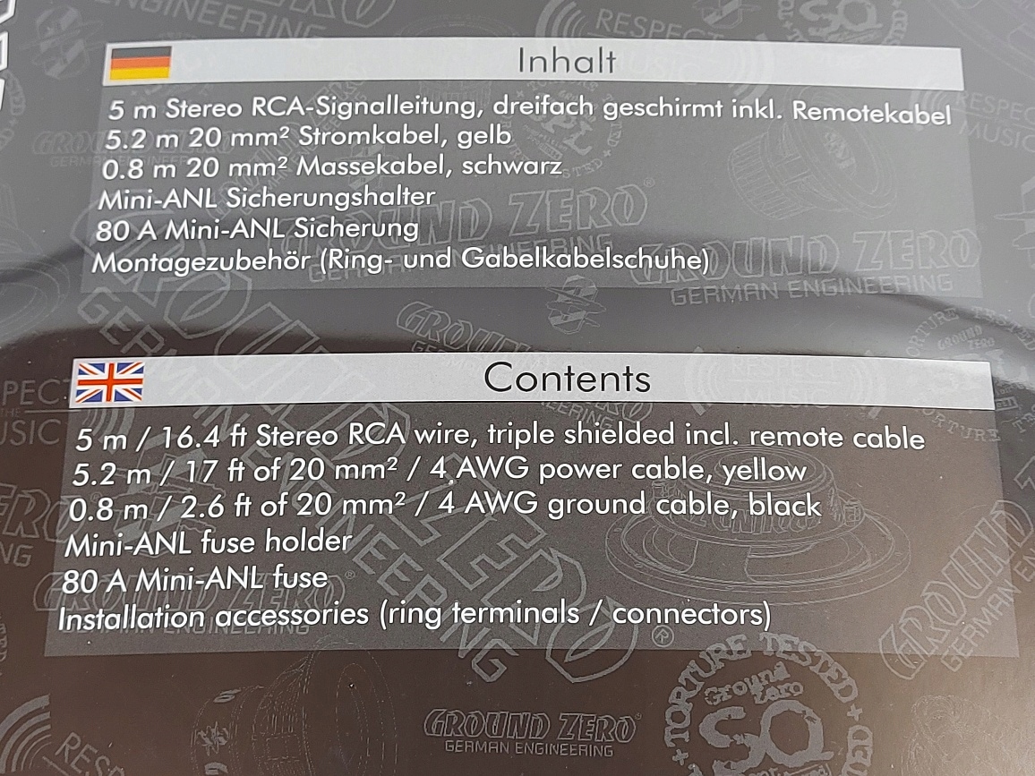 Набір для встановлення високоякісних шнурів живлення CCA 20 мм² / 4AWG, включаючи сигнальний провід