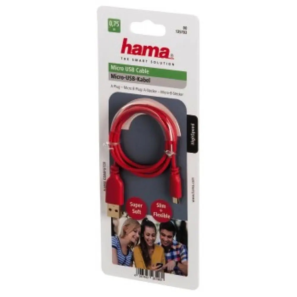 Кабель Hama micro-USB 2.0 0,75 м червоний