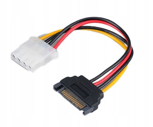 Додатковий роз’єм для 4-контактних периферійних пристроїв, перетворює 15-контактний блок живлення SATA на 4-контактний роз’єм Molex, призначений для блоків живлення ITX і ATX без достатньої кількості 4-контактних роз’ємів живлення Molex, довжина: 15 см.