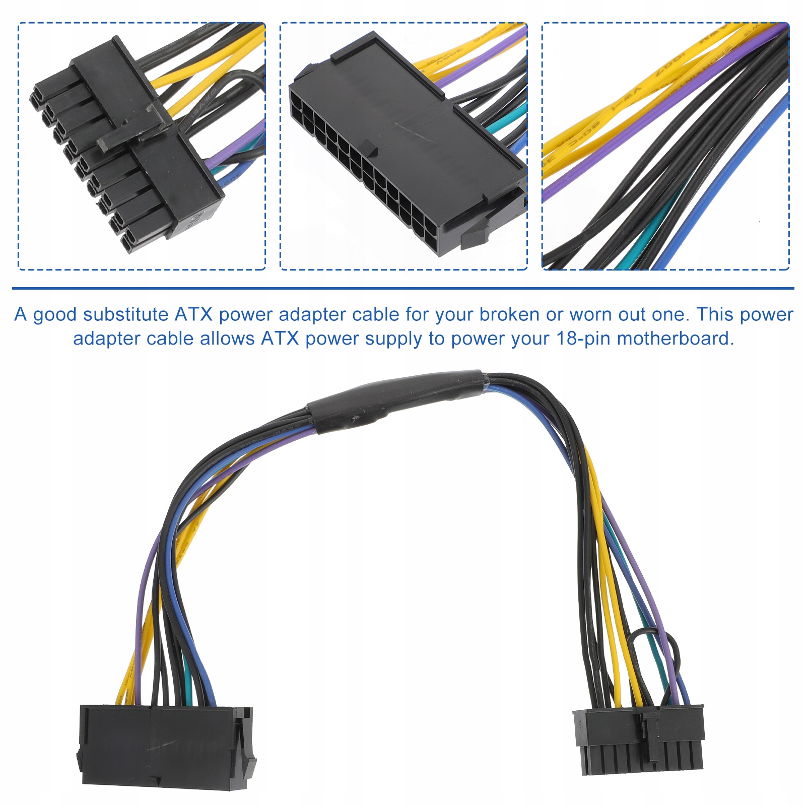 ✅ Цей кабель живлення дозволяє блоку живлення ATX подавати 18-контактну материнську плату.