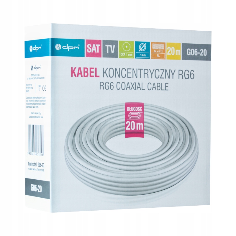 Kabel koncentryczny RG6, 1 mm CCA, 20 m, karton