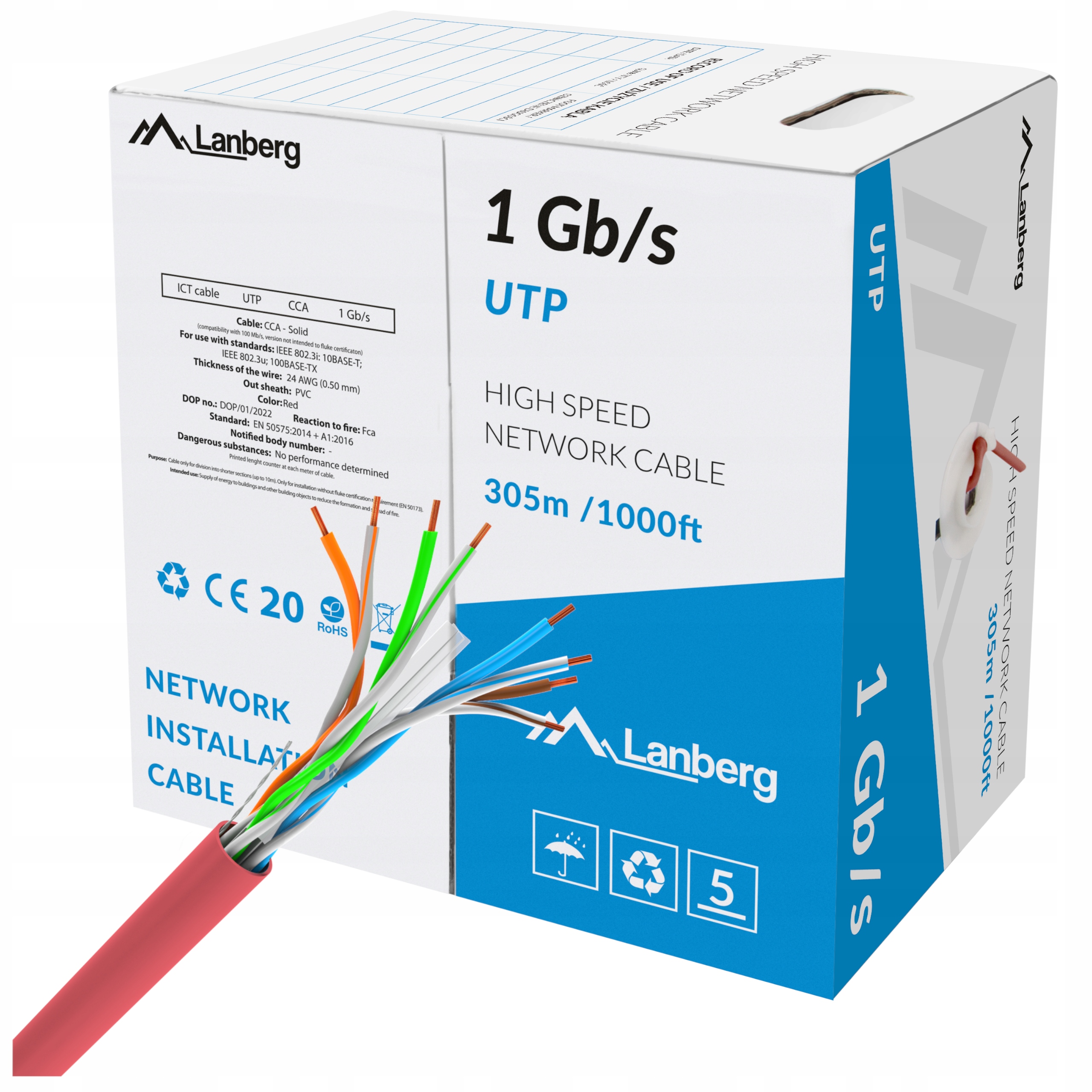 КАБЕЛЬ LAN UTP 1ГБІТ/С 305М ДРІТ CCA LANBERG - ЧЕ