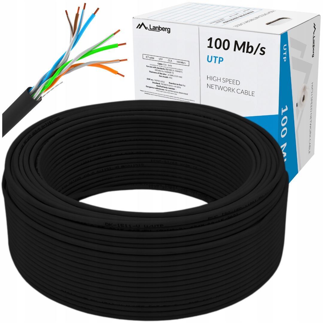 - Вита пара CAT.5e U/UTP 100 м чорний Lanberg