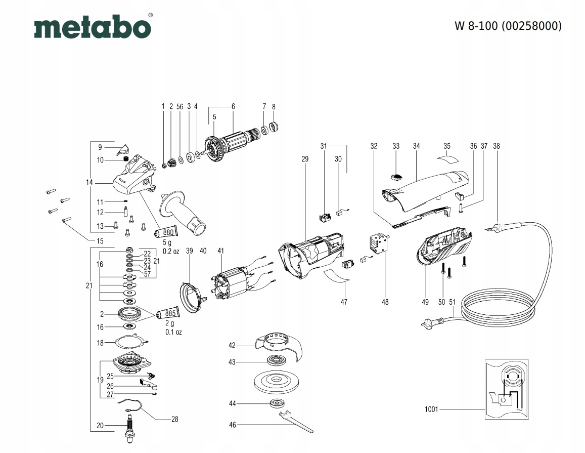 * Кабель Metabo зі штекером CEE для кутової шліфувальної машини W 8-100