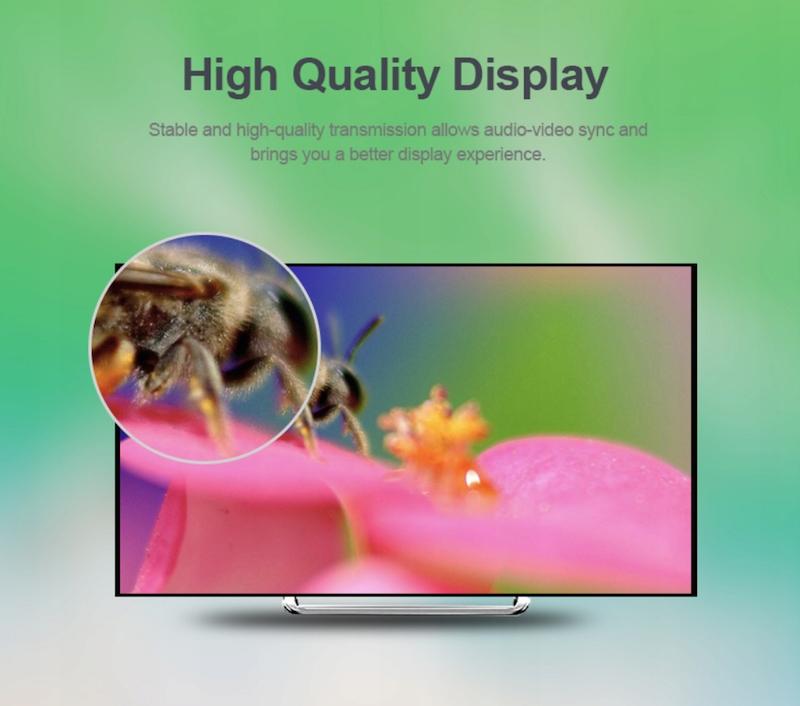 Кабель підтримує роздільну здатність 4K, тобто він підтримує пристрої з найкращою на даний момент чіткістю та різкістю зображення.
