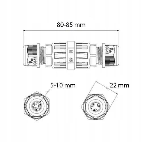 ✔ Герметичний 3-провідний роз'єм-це ідеальне рішення, яке допоможе нам підключити всі види електричних пристроїв, таких як фари, залізо, зовнішні лампи тощо. . Забезпечуючи їх зв’язок проти води та всіх інших несприятливих погодних умов, таких як УФ -випромінювання, мороз або сніг. Всередині він має гніздо, в якому ми можемо з'єднати кабелі з поперечним перерізом від 0,5-2,5 мм2 , а діаметр кабелю може бути від 5 до 10 мм.