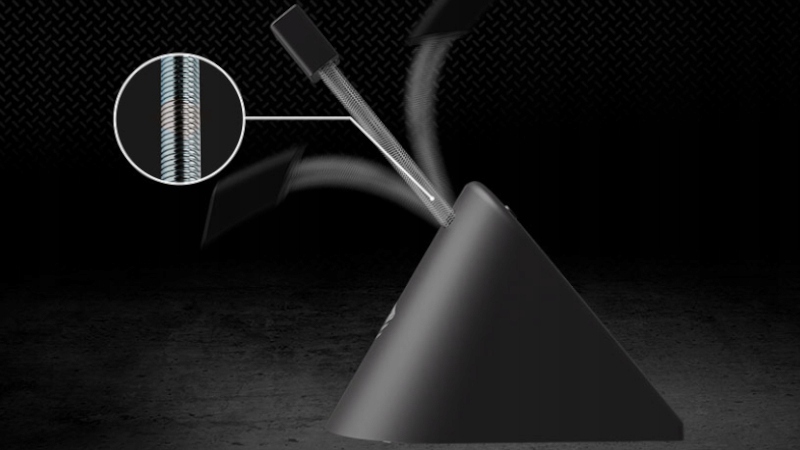 Банджі значно покращує комфорт і контроль над гризуном, оскільки усуває тертя кабелю об підкладку, згинання кабелю та запобігає його зісковзуванню з краю столу. Це означає більшу точність під час найважчих змагань у ваших улюблених іграх. Гумовий затиск в тримачі дозволяє кріпити кабелі різної товщини. Ви можете налаштувати мишу, щоб реагувати якомога швидше під час гри.