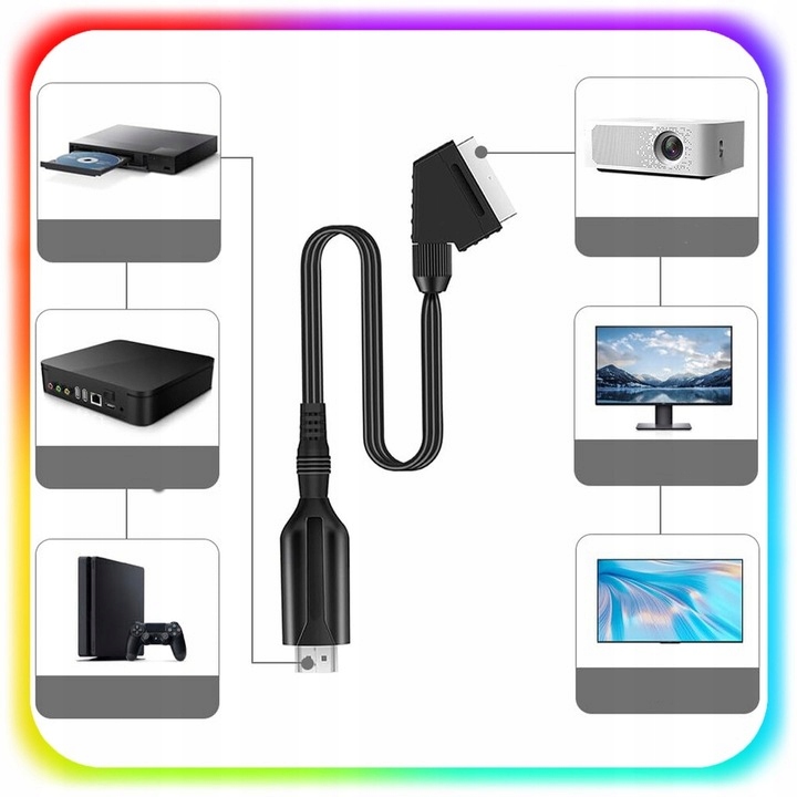Конвертер дозволяє конвертувати сигнал HDMI → SCART, щоб ви могли легко підключати ноутбуки, ігрові консолі, програвачі Blu-ray, телеприставки або комп’ютери до телевізорів і моніторів, обладнаних класичним входом SCART.