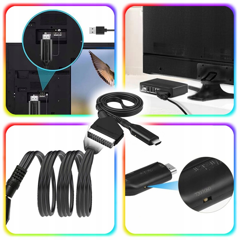 Перетворювач дозволяє перетворити сигнал hdmi → scart , завдяки якому ви можете легко підніматися на ноутбуки, ігрові консолі, гравці Blu-ray, декодери або комп’ютери для телевізорів та моніторів, оснащених класичним входом Scart.