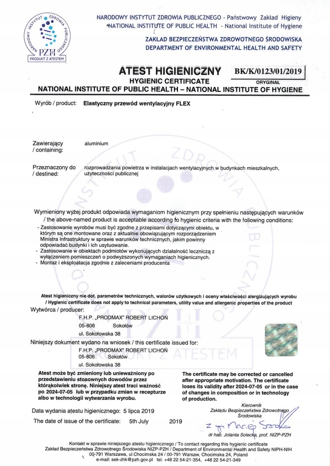 Використання гофрованого зовнішнього шару та гладкого внутрішнього шару значно зміцнює структуру каналу. Поліетилен, з якого виготовлений канал, забезпечує його малу вагу, зберігаючи високу міцність і гнучкість. Наші вентиляційні канали мають антистатичне покриття та дуже хороші акустичні та ізоляційні властивості, а технологія d2p надає їм антибактеріальних і протигрибкових властивостей, забезпечуючи гігієну повітря, що подається, і підтримуючи відповідну чистоту системи.