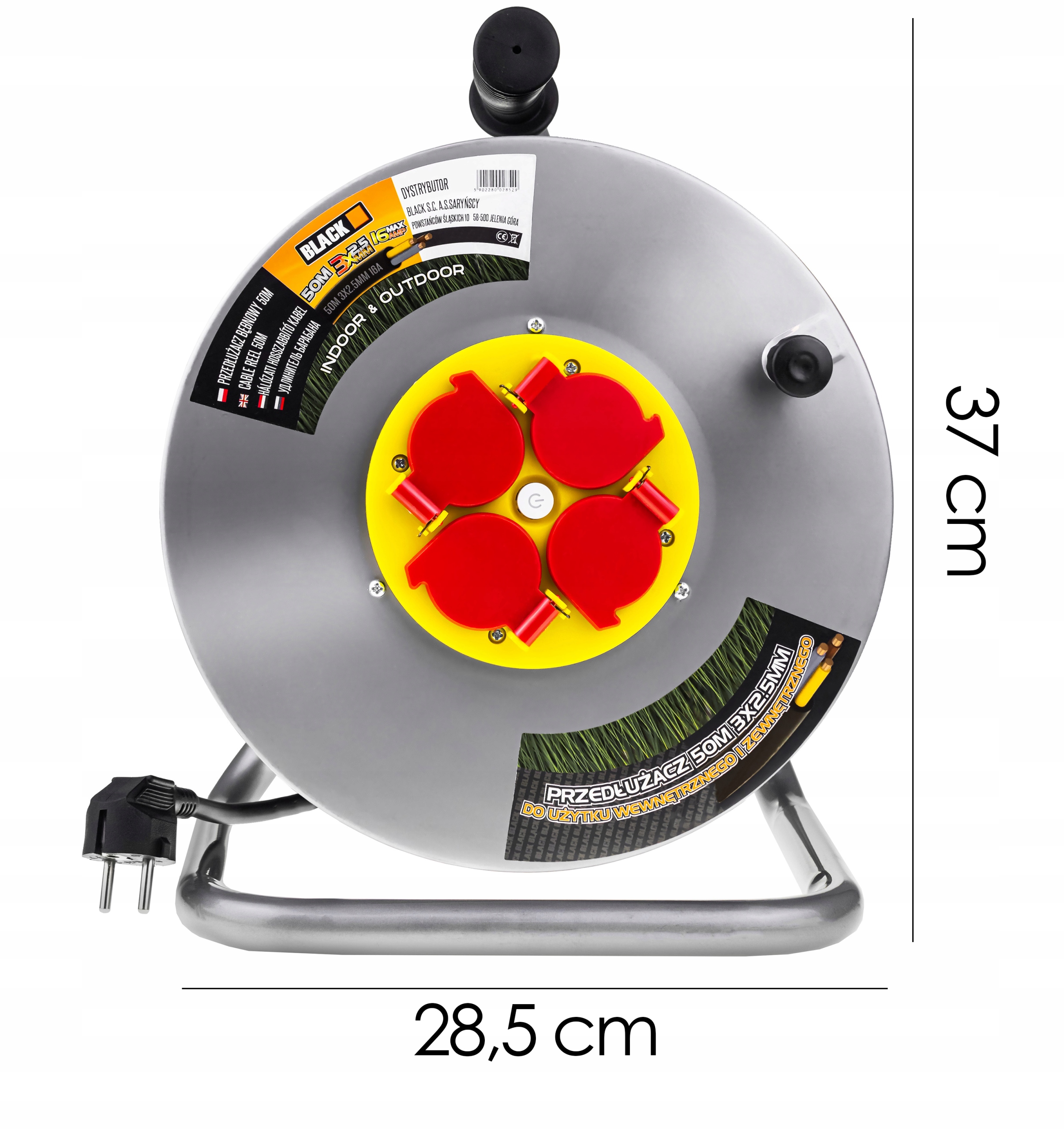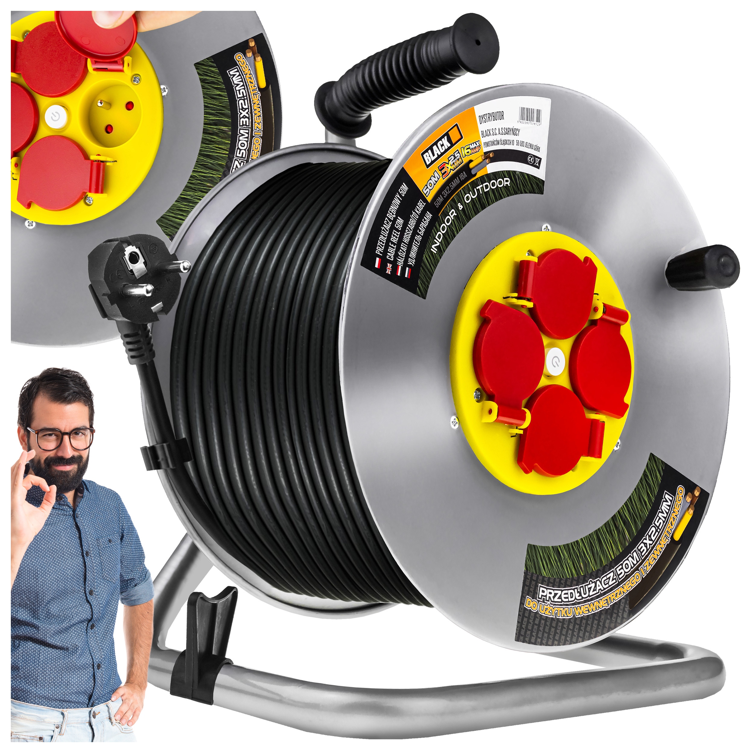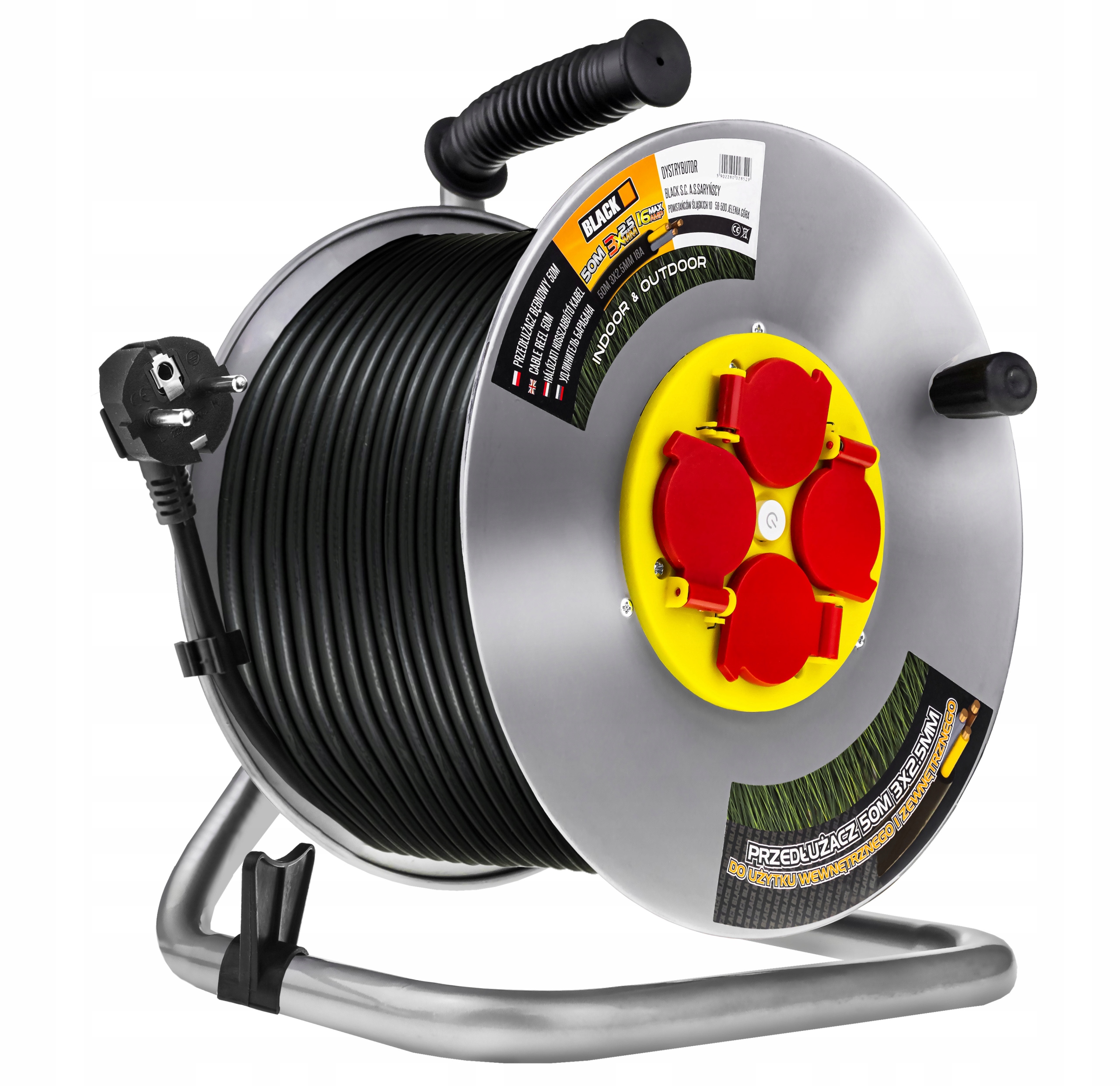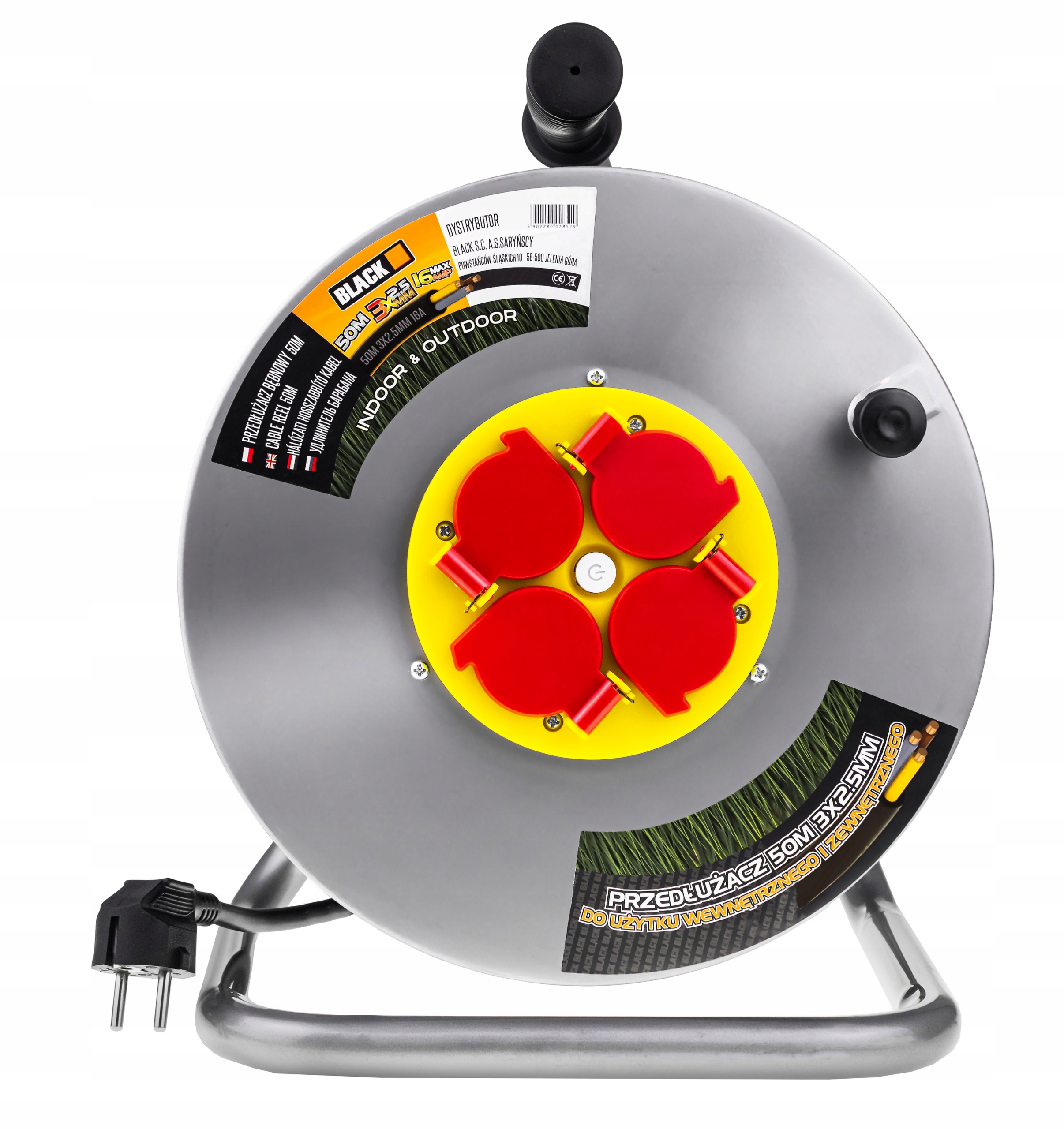 Подовжувач на котушці має 4 гнізда із заземленням, захистом і зручними клапанами.