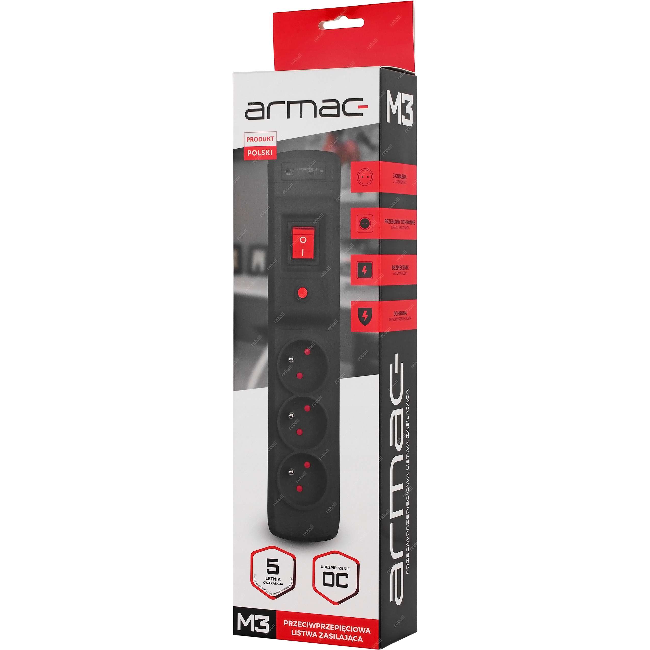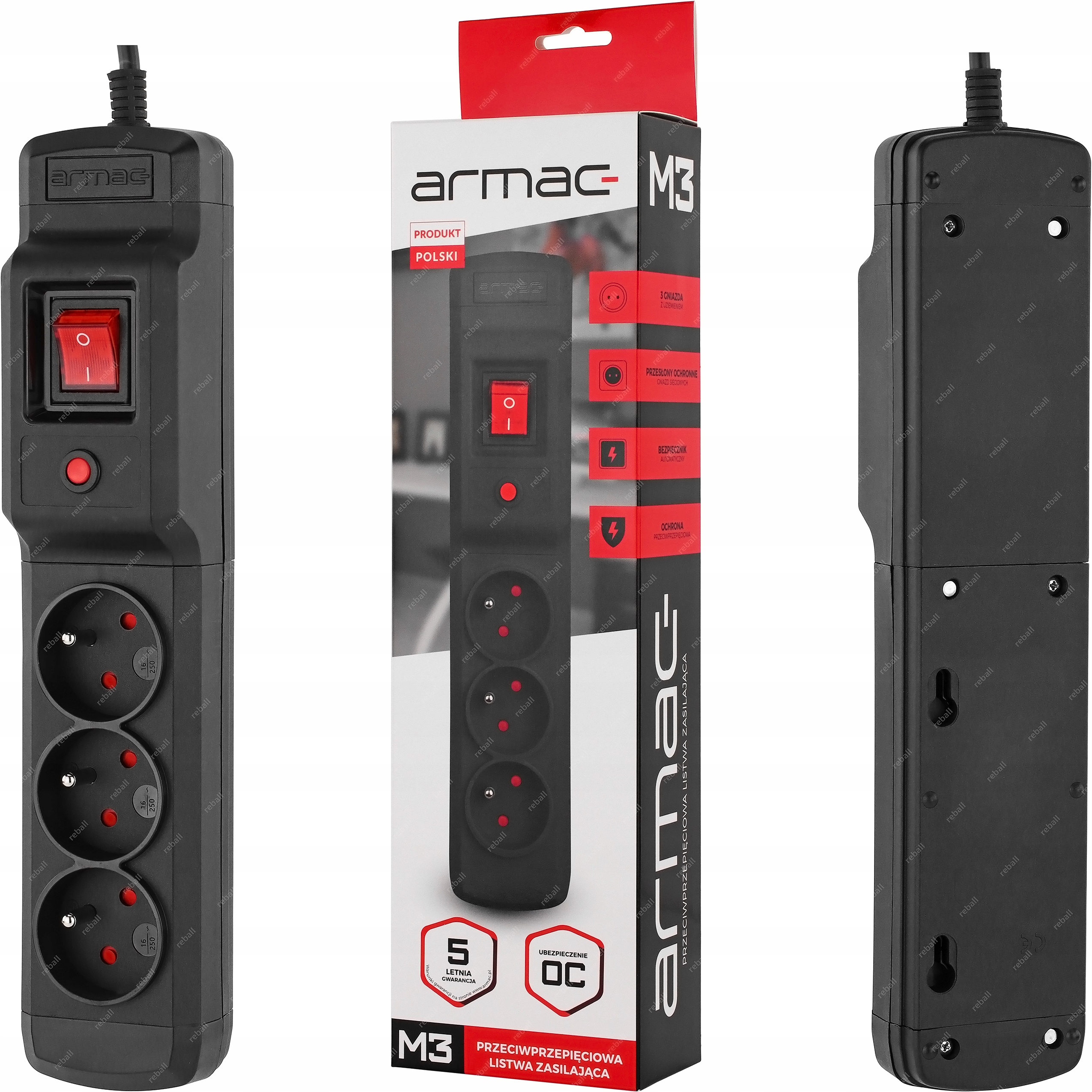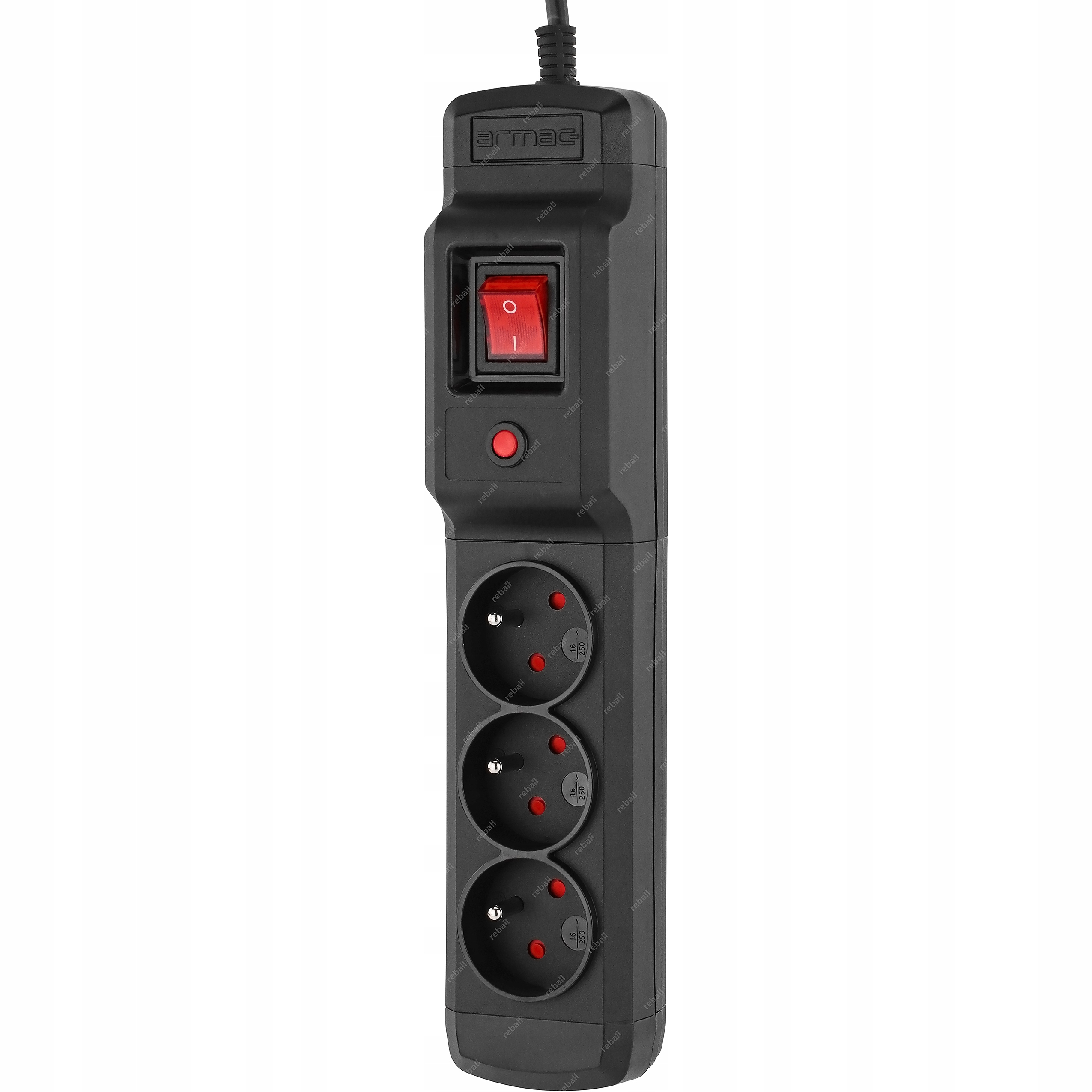 КАБЕЛЬ-ПОДОВЖУВАЧ, АНТИ ПЕРЕНАПРУГИ, 3 РОЗЕТКИ ARMAC M3, 1,5 м