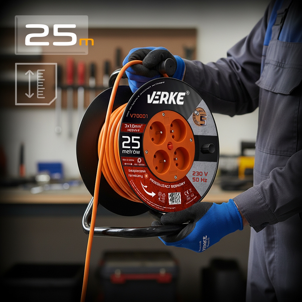 ✅ 25 метрів - подовжувач має довжину до 25 м, що робить його ідеальним для використання вдома, на складі чи в саду