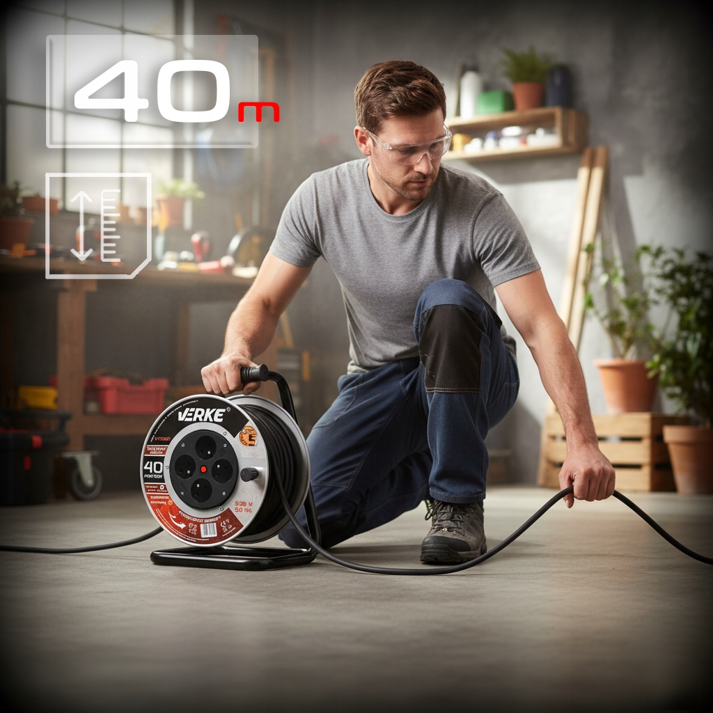 ⚡ Довжина кабелю – 40 метрів. Така довжина виключає необхідність використання додаткових подовжувачів, що підвищує зручність і безпеку роботи.