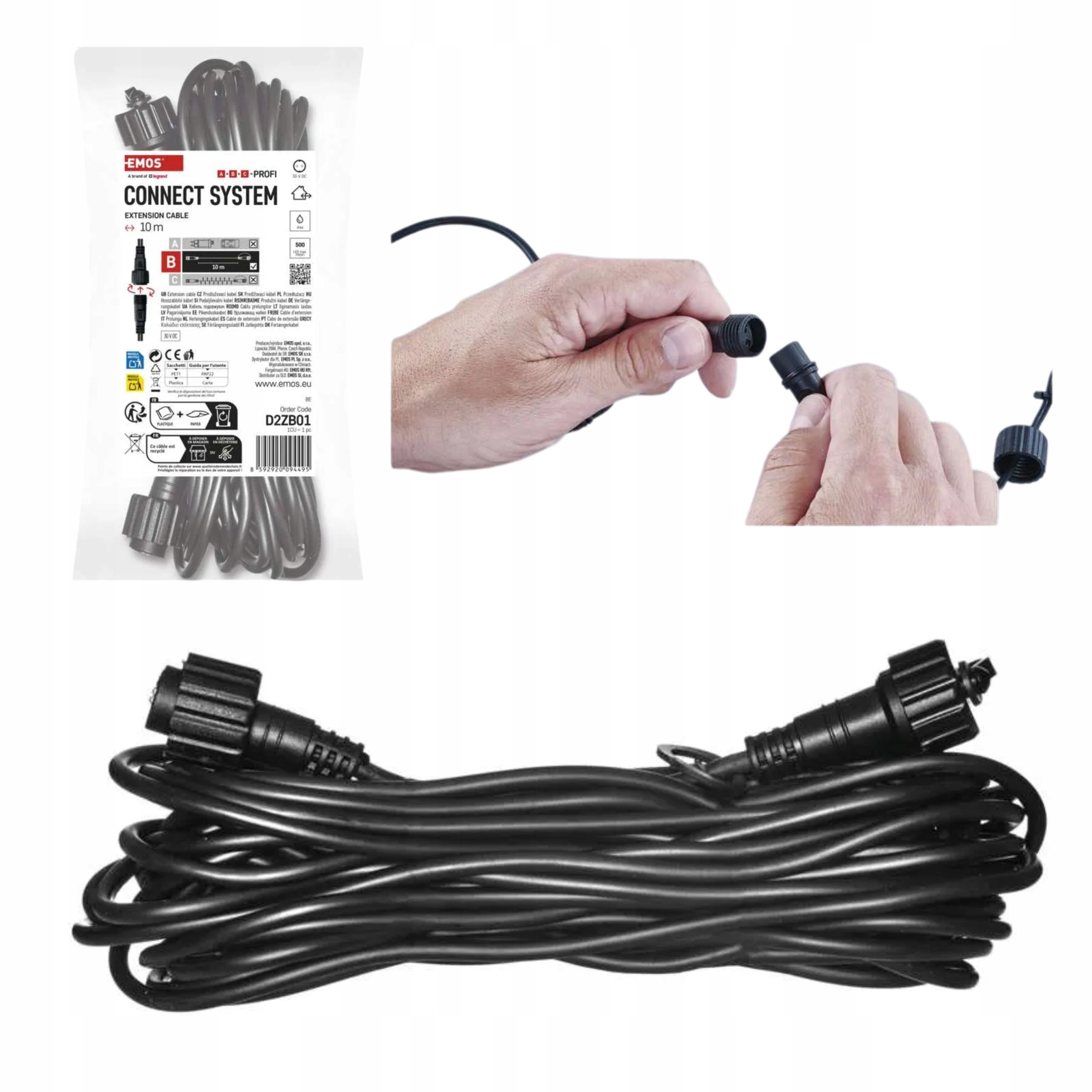 КАБЕЛЬ-ПОДОВЖУВАЧ подовжувач 10м, кабель чорний, IP44, PROFI, EMOS