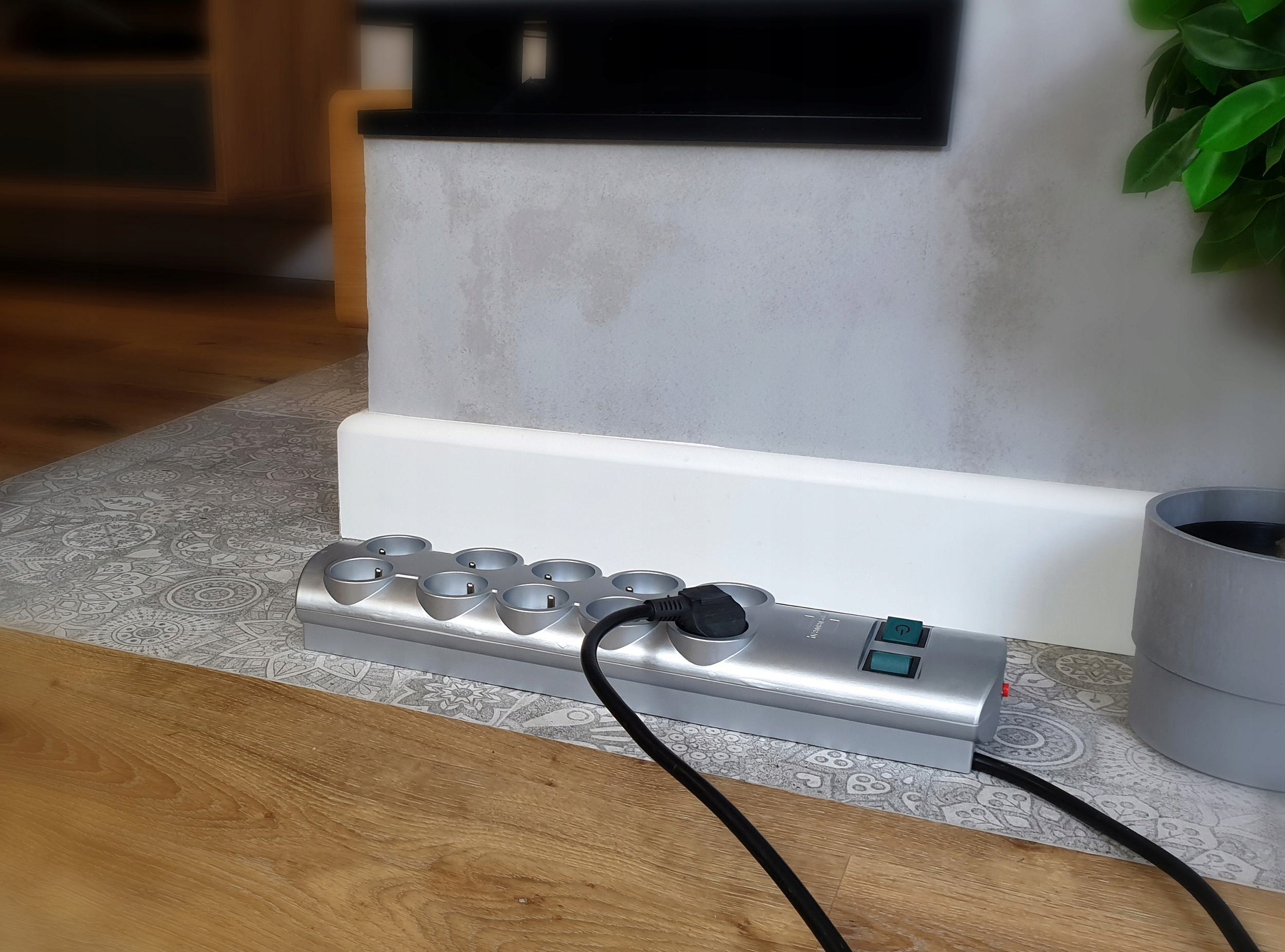 Подовжувач живлення має практичні вуха для кріплення на стіні