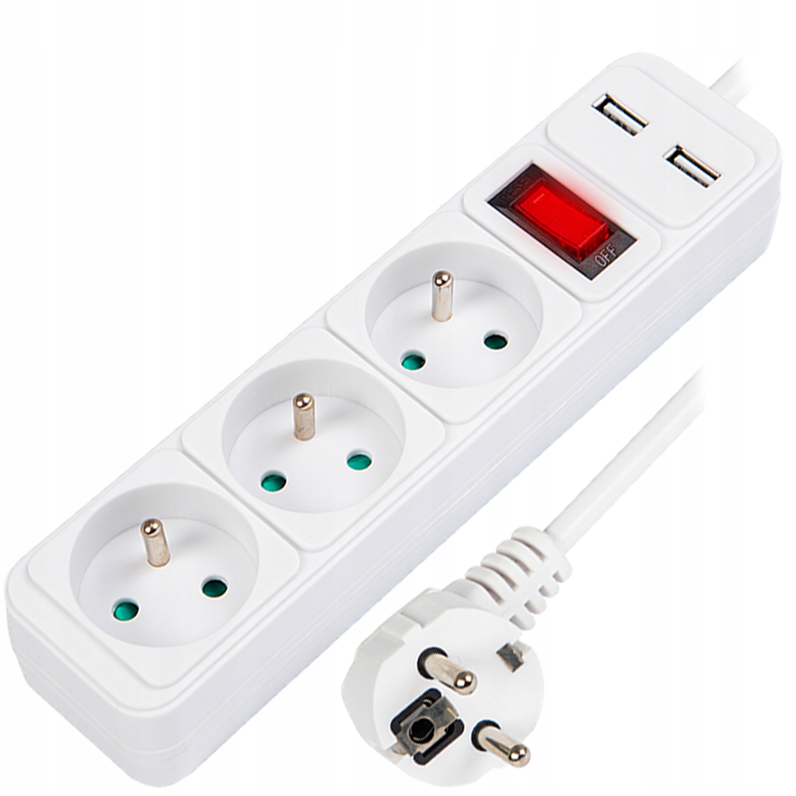 ТОВСТИЙ КАБЕЛЬ-ПОДОВЖУВАЧ ПОДДОВЖУВАЧ ПОЖИВЛЕННЯ 3 РОЗЕТКИ 2xUSB 2.1A 5M