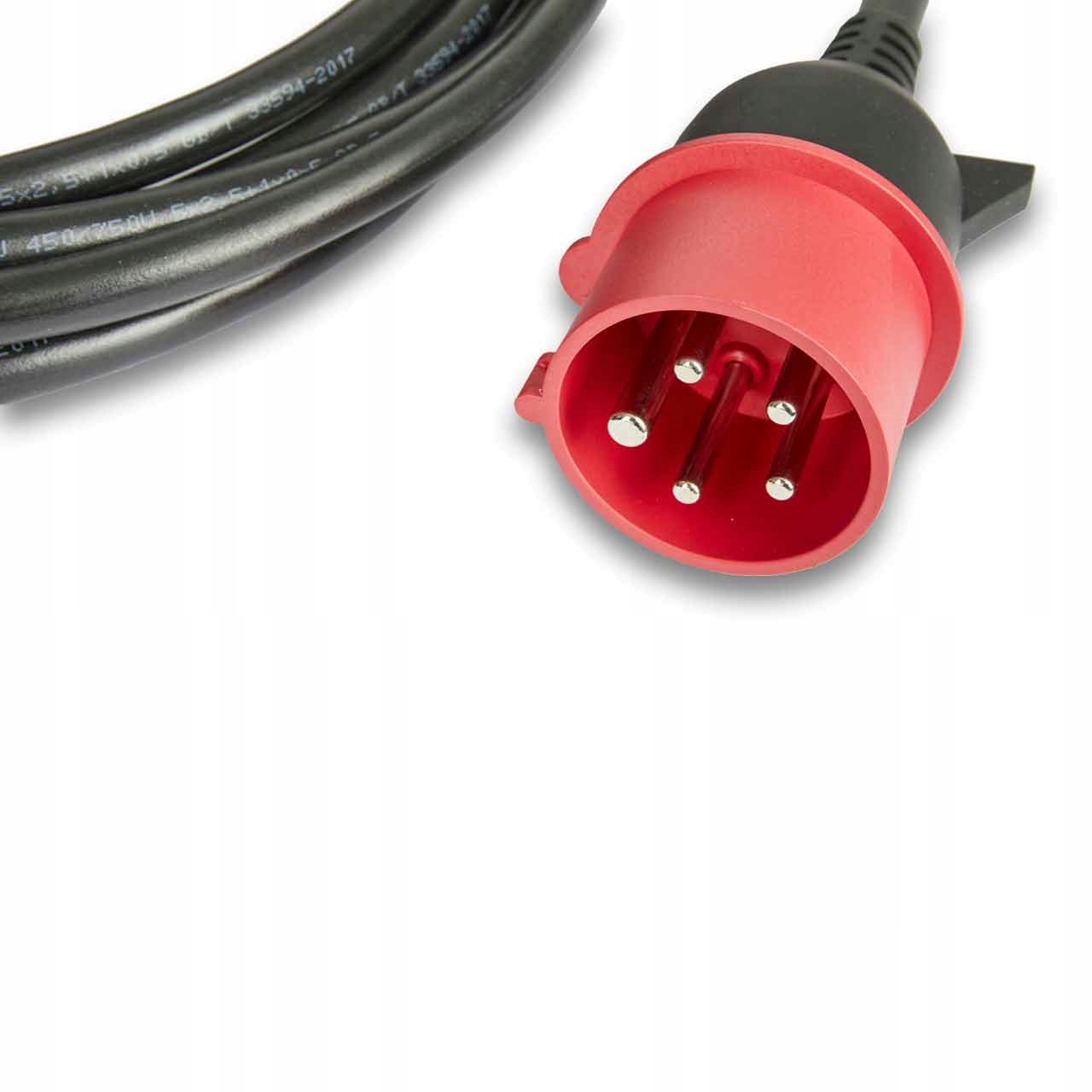 Заряджання за допомогою кабелю режиму 2. Блок керування інтегрований із зарядним кабелем, який підключається до звичайної електричної розетки. IEC 60309 3P-16A Червона вилка (режим 2)