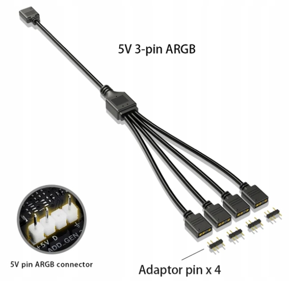 5V 3PIN район дозволяє підключити чотири розетки ARGB ARGB на материнській платі комп'ютера. Довжина прибл.