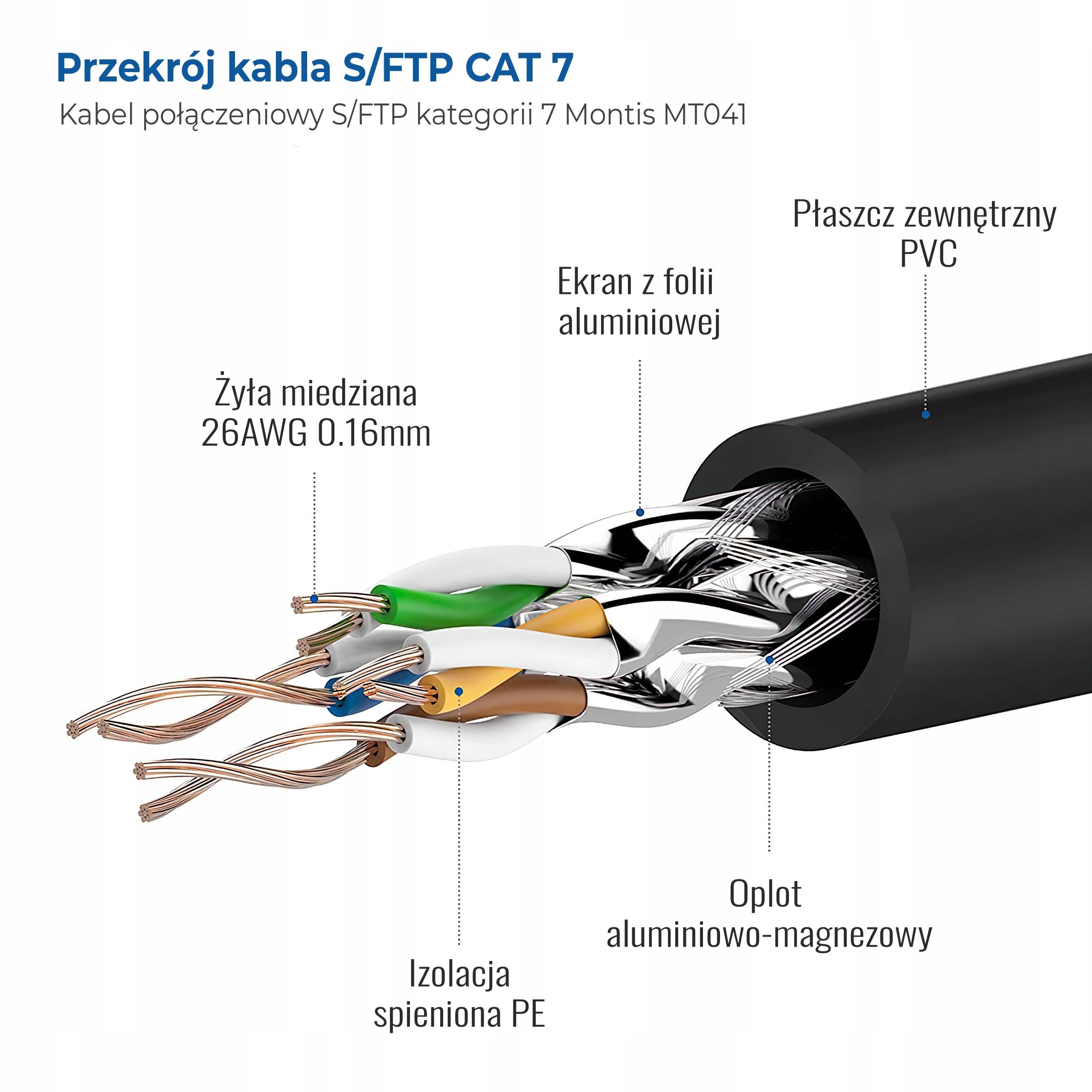 В епоху постійного технічного прогресу ключем до успіху є, перш за все, надійність і швидкість. Ethernet-кабель Montis категорії 7, модель MT041-3, забезпечує швидкість мережі до 10 Гбіт/с. Він працює на високих частотах до 600 МГц, що робить його ідеальним для створення ефективних домашніх і офісних мереж.