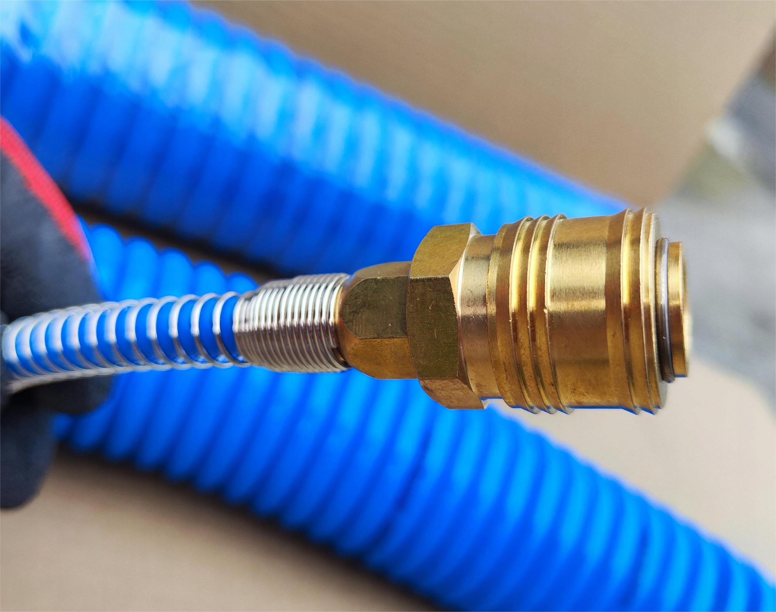 Ми пропонуємо поліуретановий спіральний шланг різних діаметрів (8x5 мм, 10x6,5 мм, 12x8 мм) і довжини (5/10 /15 м ), який характеризується міцною конструкцією, яка витримує робочий тиск до 12 бар і тиск розриву до 24 бар (23 °C), а також температури від -10 °C до +70°C.