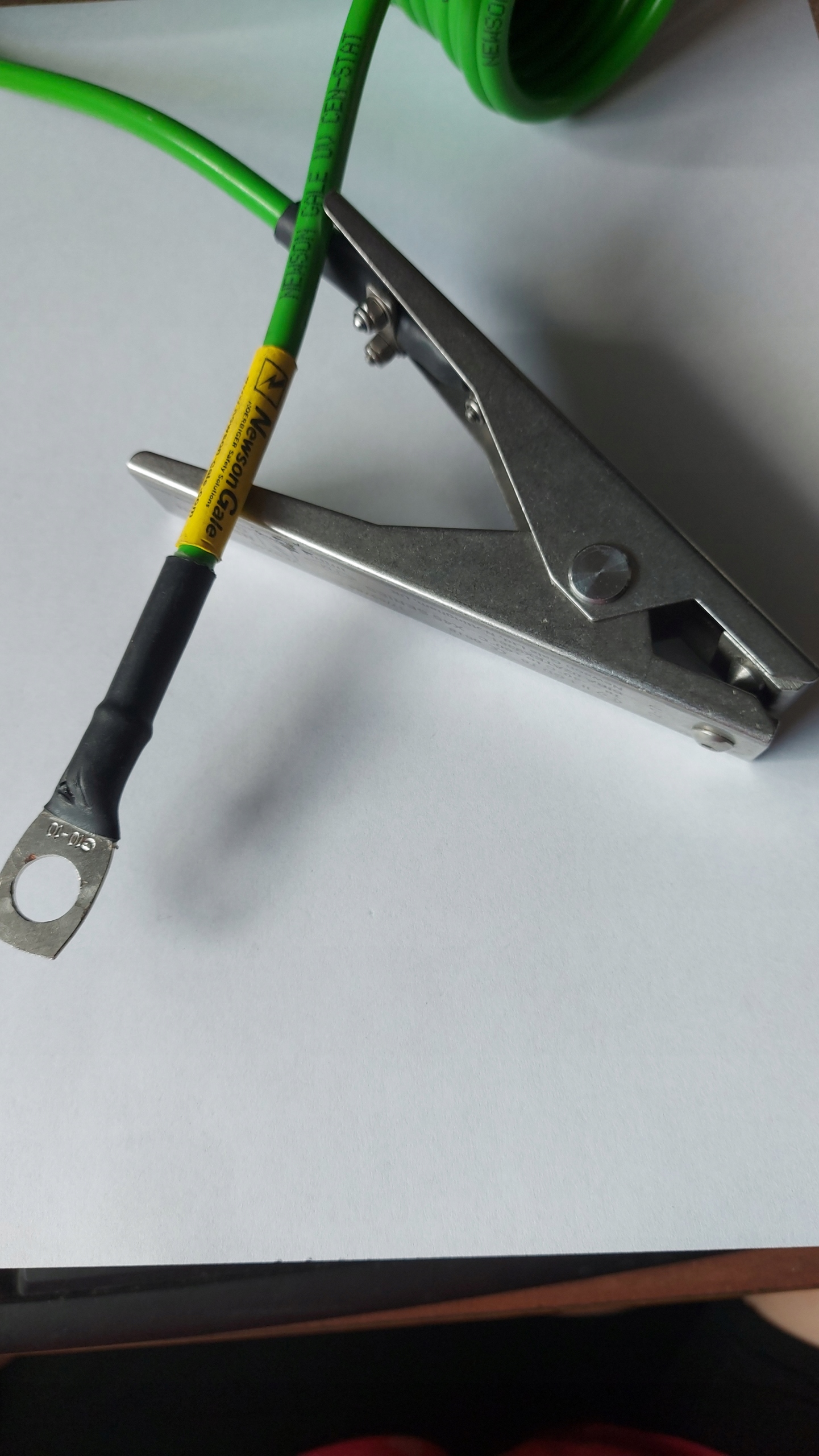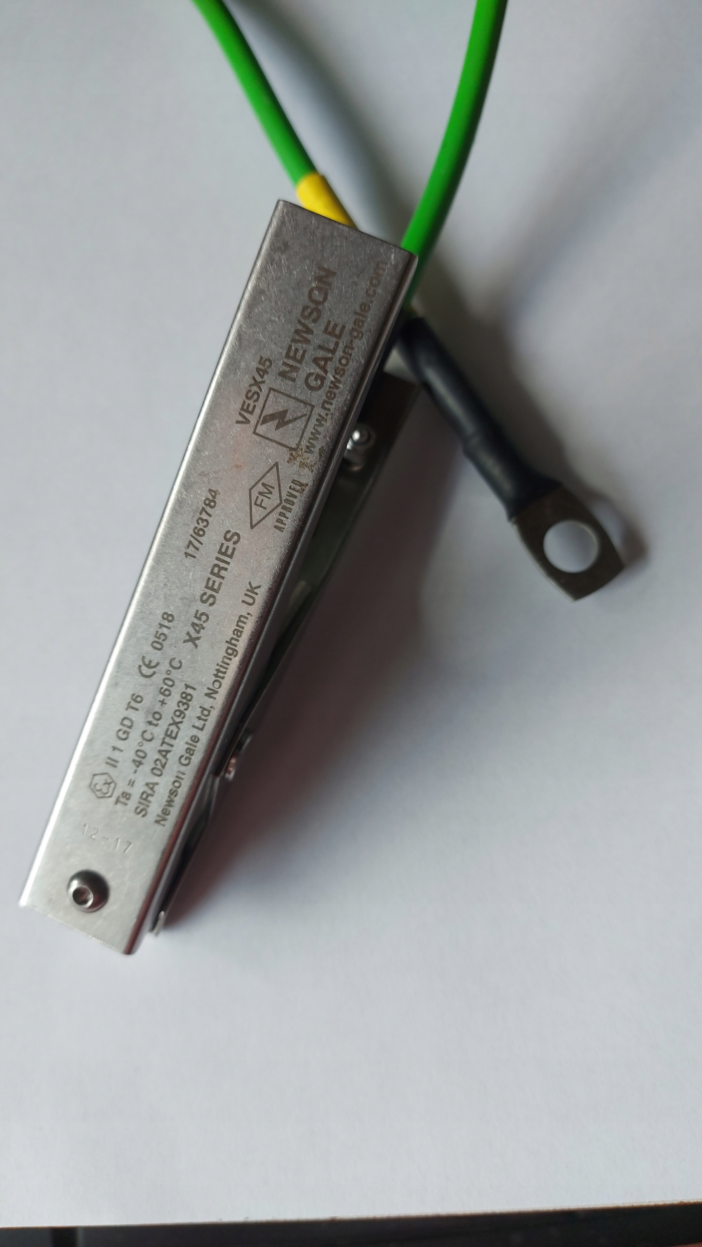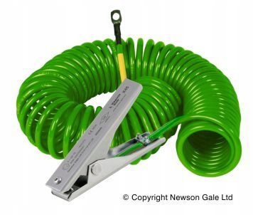 Затискач заземлення Cen-Stat VESX45 Newson Gale із зеленим спіральним кабелем довжиною 5 м із вушками O10-10