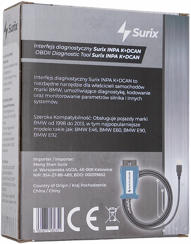 Діагностичний інтерфейс SURIX K+DCAN для автомобілів BMW, кабель INPA ISTA NCS