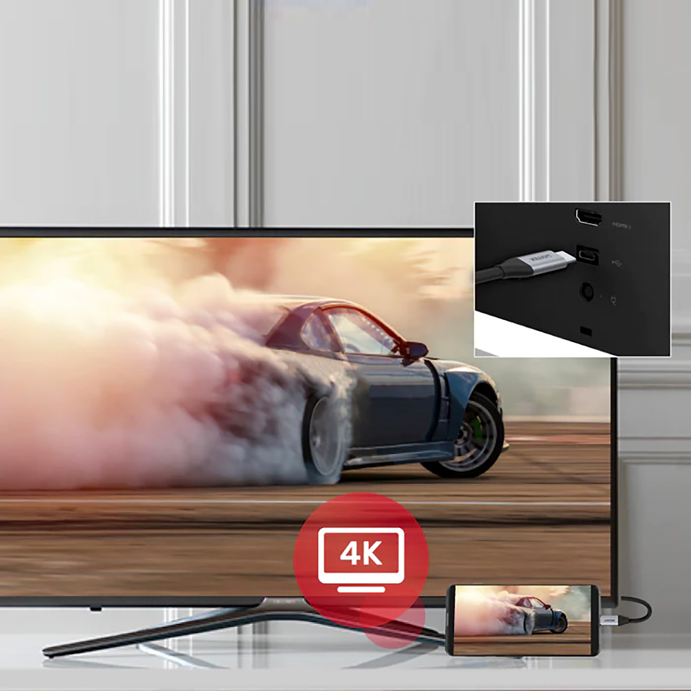 Ідеально для повсякденного використання як елегантний кабель для підключення комп’ютера (наприклад, MacBook Pro 2019) до монітора 4K, а також у поїздках – ділових чи приватних – для підключення смартфона чи планшета до телевізора. Зображення в роздільній здатності 4K або 2K з частотою дискретизації 60 Гц ні в чому не поступається тим, що передаються через кабель HDMI або DisplayPort. Щоб скористатися цією опцією, порт USB-C на пристрої має підтримувати альтернативний режим дисплея або бути сумісним із Thunderbolt 3.