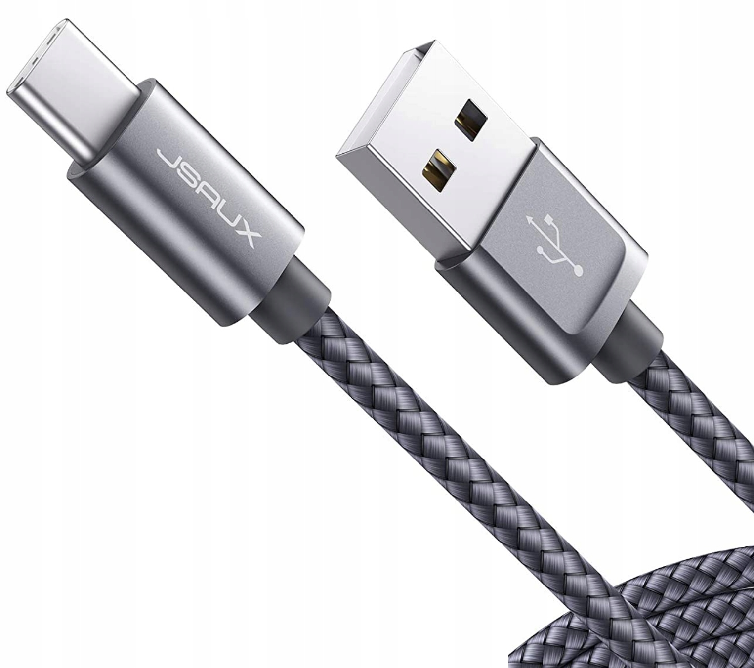 Кабель JSAUX 2M USB C Швидке заряджання Кабель для заряджання з нейлоновим обплетенням Сумісний із Samsung Galaxy S10 S9 S8 A3 A5 2017 Note 10 9 8, Huawei P10 P9, Google Pixel, Sony Xperia XZ, LG - сірий