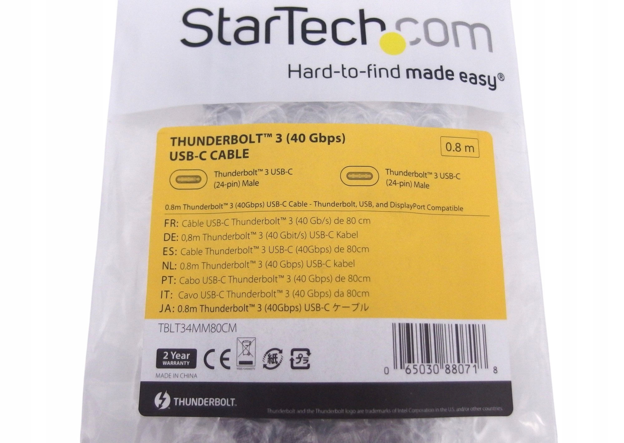 USB-C кабель на USB-C 40 Гбіт/ с 0,8 м Thunderbolt 3 startech (5120 x 2880px)