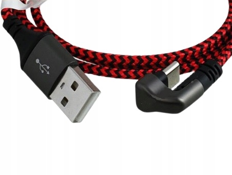 КАБЕЛЬ Штекер USB прямий до штекера USB-C під кутом 180°, нейлон, червоно-чорний, довжина 0,8 метра HQ