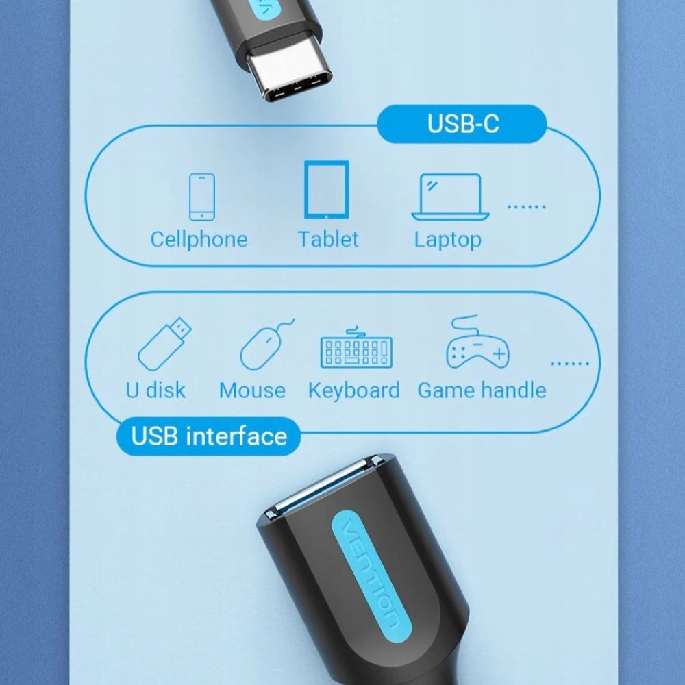 Адаптер Vention USB-C – USB-A підтримує лише пристрої з портом USB-C і несумісний із портами Lightning або Micro USB. Він дозволяє підключати класичні аксесуари USB-A до сучасних смартфонів, планшетів і ноутбуків з USB-C. Перед покупкою переконайтеся, що ваш мобільний пристрій підтримує функцію OTG.