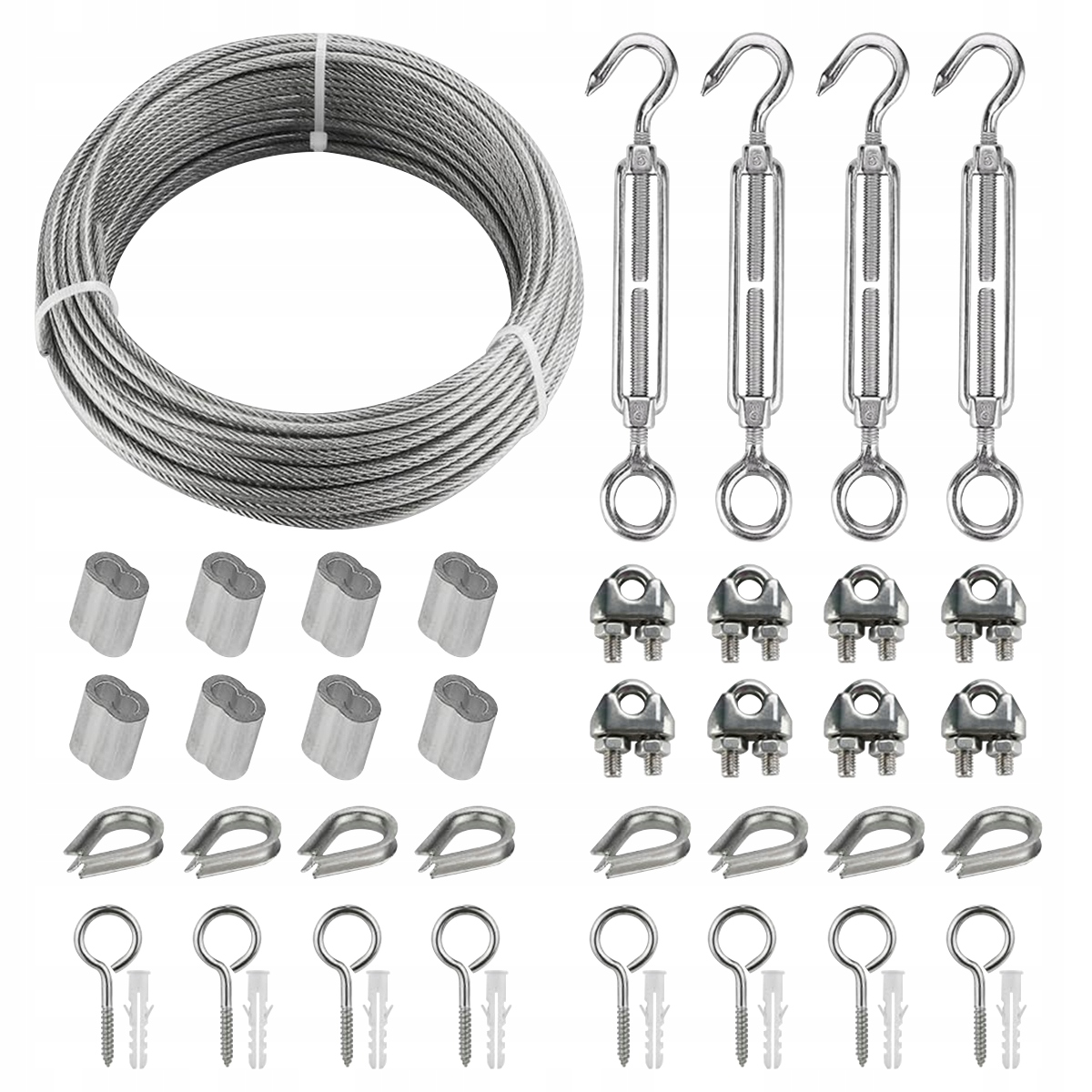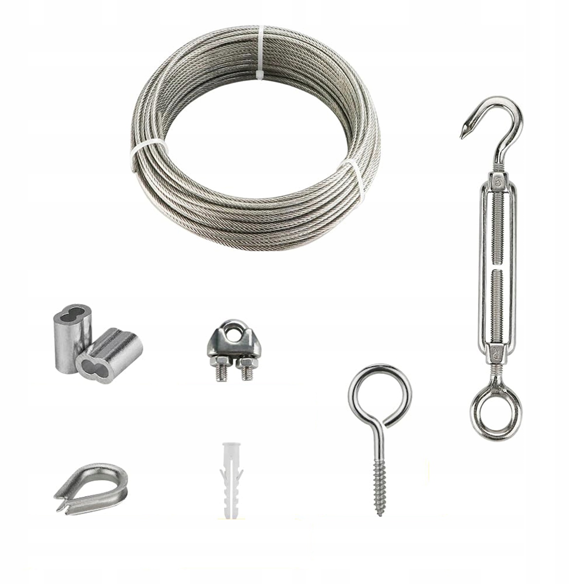 сталевою мотузкою з діаметром 3 мм, натягувач мотузки з нержавіючої сталі M5, гачок і вушка, гвинт для очей, затискач з мотузкою, алюмінієві рухи та кауз