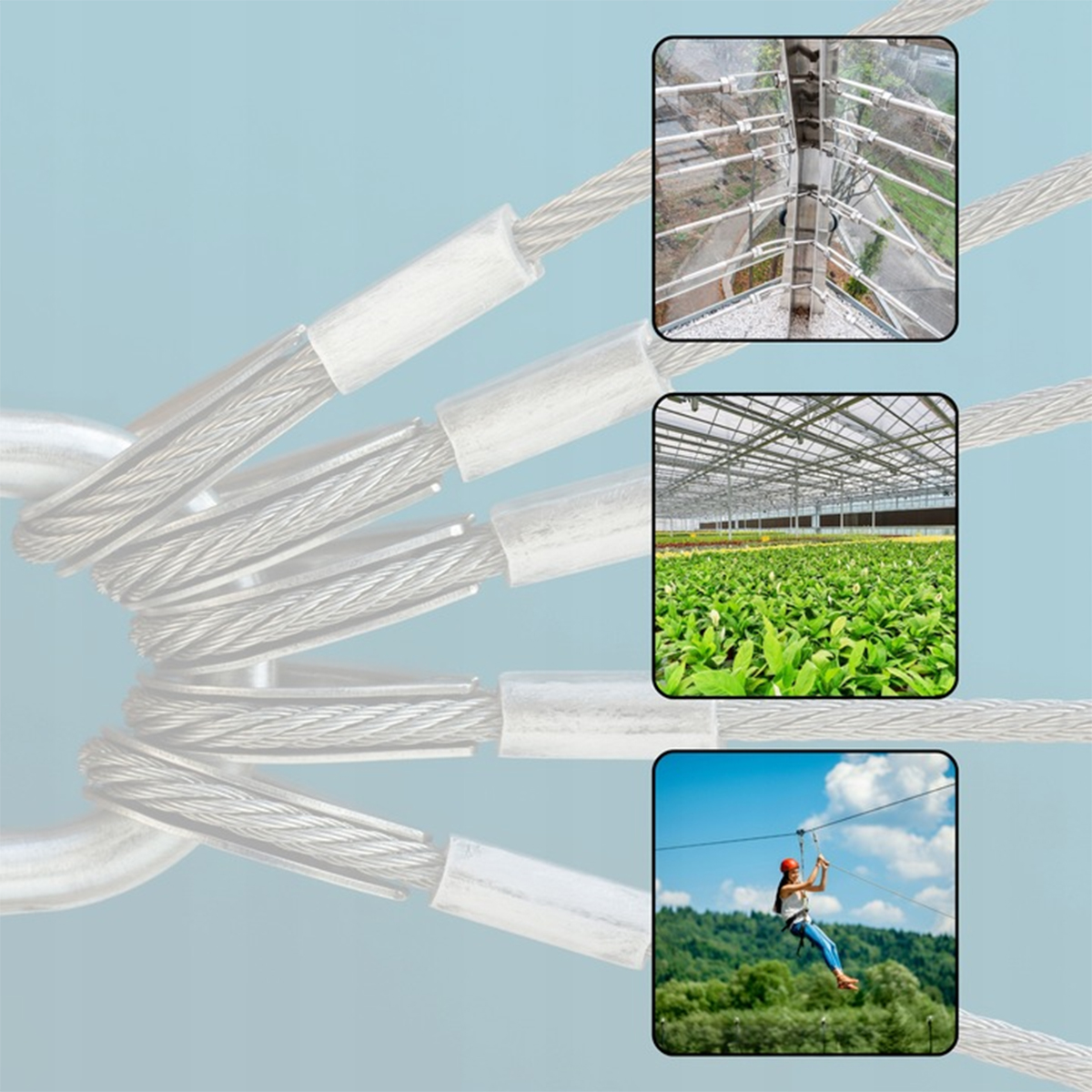 сталевий кабель, виготовлений з високоякісної 304 нержавіючої сталі, покрита матеріалом ПВХ, поверхня ланки забезпечує хорошу стійкість до корозії та іржі, міцних та міцних затискаючих петля з алюмінієм для тривалого використання у всіх погодних умовах. Рішення