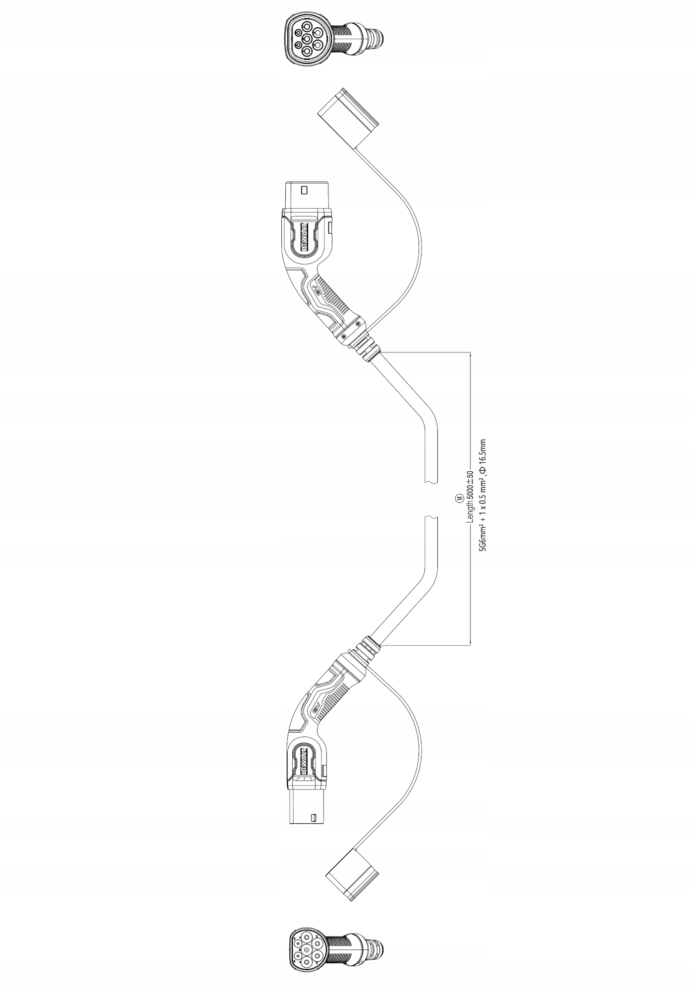 Кабель зарядки автомобілів Dewalt 11 кВт тип 2 до типу 2 EV 16A IP65 5M