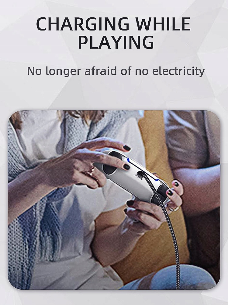 Зарядний кабель довжиною 3 м/10 футів забезпечує зручне використання та необхідну гнучкість, дуже зручно, особливо коли ви лежите на дивані чи ліжку. Завдяки цьому спеціально розроблений зарядний кабель можна носити та зручно заряджати контролер.