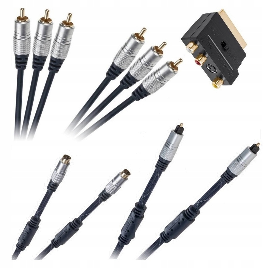 КАБЕЛІ 3xRCA TOSLINK ОПТИЧНИЙ SVHS КОМПЛЕКТ КАБЕЛЕЙ EDC