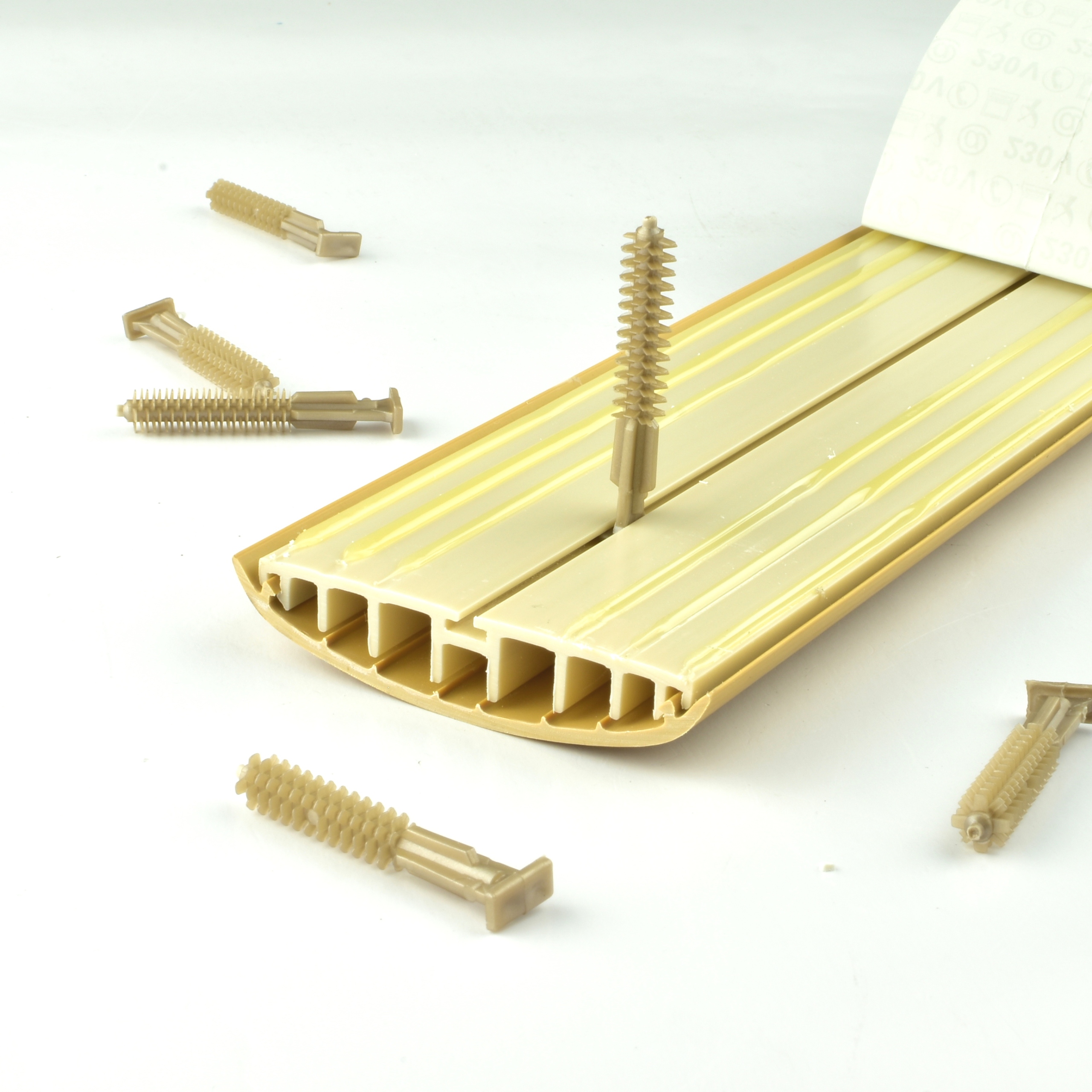 Перший спосіб неінвазивний і передбачає видалення клейовий захист і кріплення кришки до поверхні. Другий спосіб додатково вимагає використання монтажних шпильок для кріплення стрічки до підлоги чи стіни.