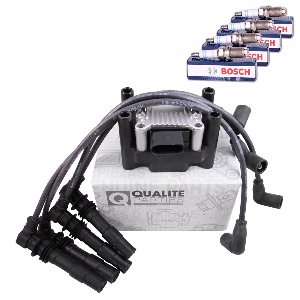 КАБЕЛІ ЗАПАЛЮВАННЯ BOSCH + КОМПЛЕКТ СТЕК BOSCH + КОТушка ЗАПАЛЮВАННЯ QP ДЛЯ AUDI, SEAT, SKODA ТА VOLKSWAGEN - 1.4 16V, 1.6 16V