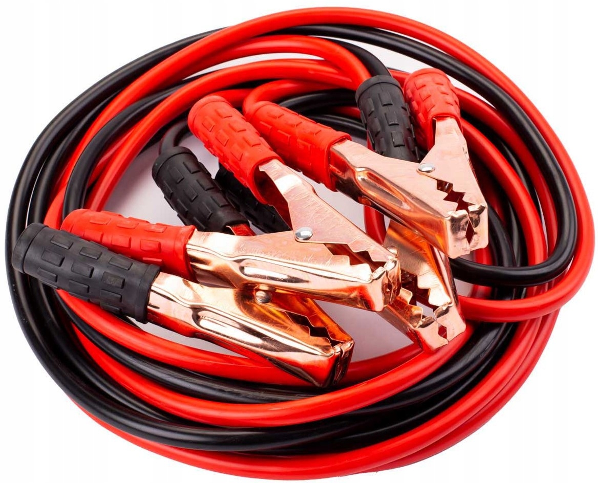 - Набір містить два кабелі, довжиною 4 метри кожен, двох кольорів (чорний і червоний), закінчені суцільними широкорозкритими затискачами