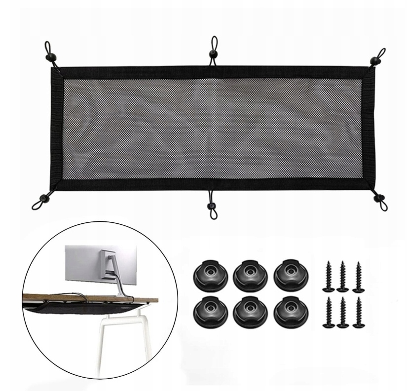 4 Ви можете приховати будь -який кабель під столом, щоб підтримувати порядок на столі. Сітка краще підходить до столу і зміцнює навантаження. Гнучка мотузка з еластичною смугою, яка вибірково збільшує відстань між окремими роз'ємами. Відповідність різних типів аудіо, відео та розетки для даних. Розміри таблиці: