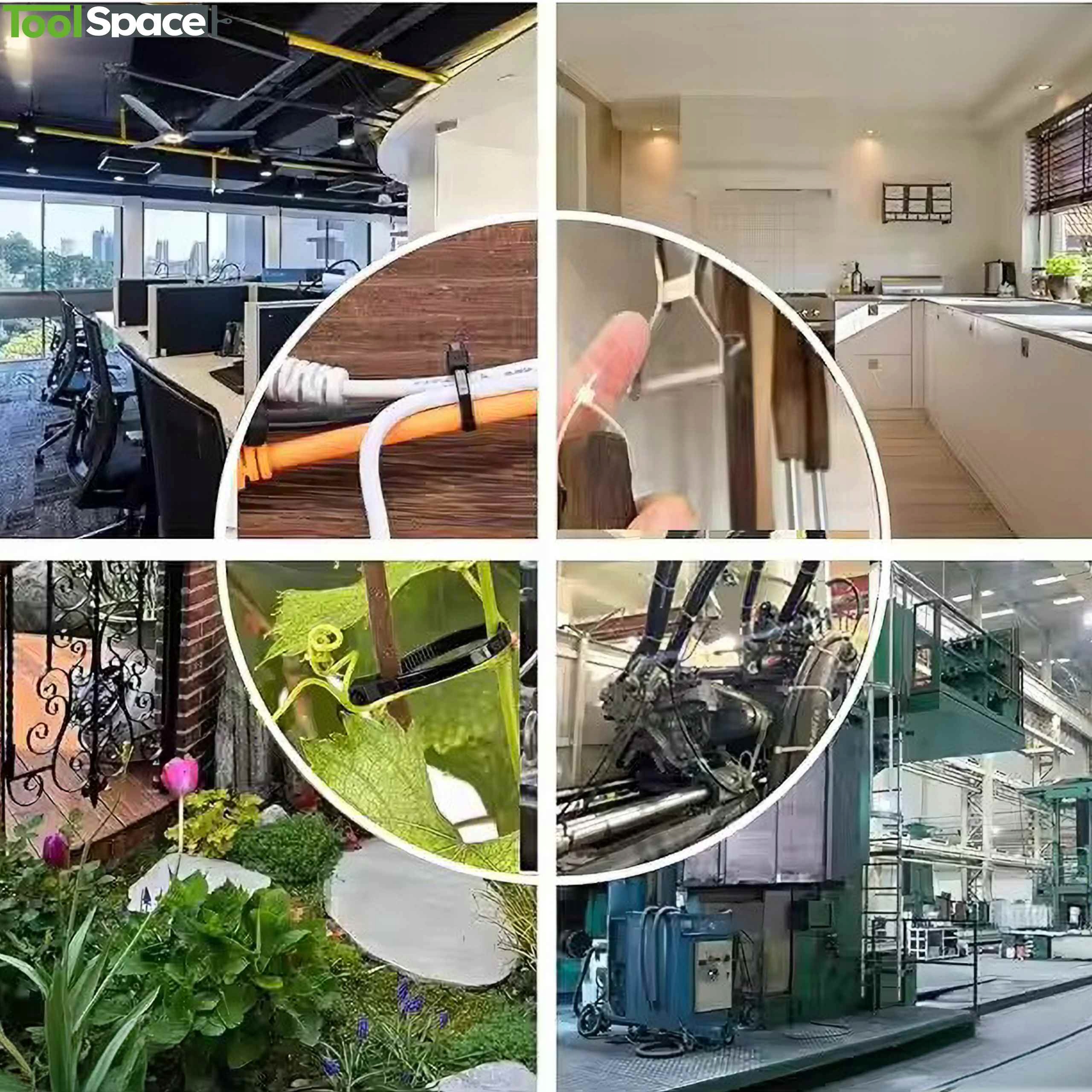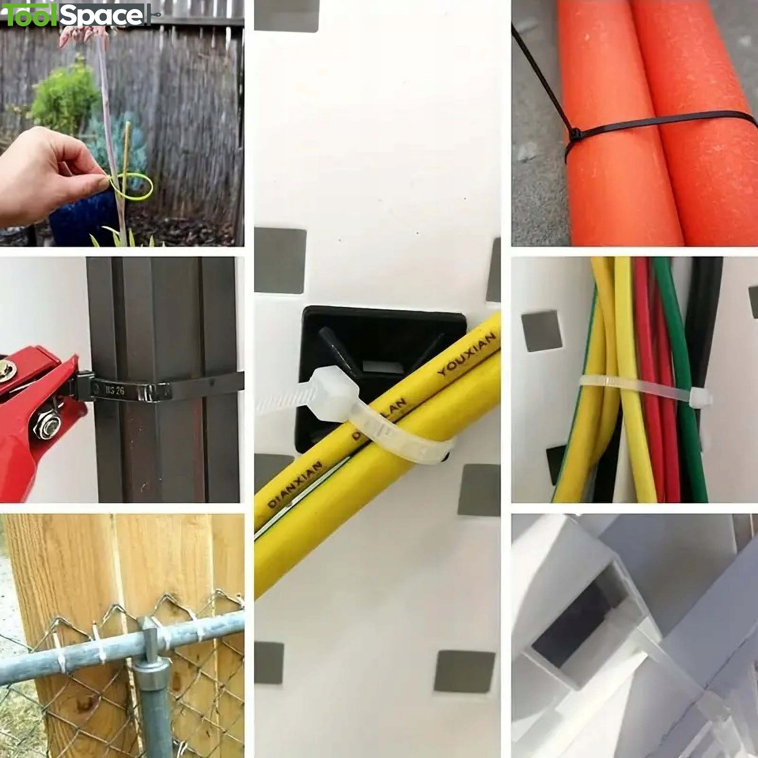 Стяжки ToolSpace є незамінним обладнанням як для ентузіастів, так і для професіоналів. Вони будуть корисні в різних галузях промисловості, таких як автомобілебудування, садівництво, а також у домашньому господарстві та промисловості. Виготовлені з високоякісного нейлону 66, 94V-2 (поліамід), вони забезпечують виключну міцність і стійкість до мінливих погодних умов, включаючи ультрафіолетове випромінювання, високі температури, опади та кислоту ерозія .