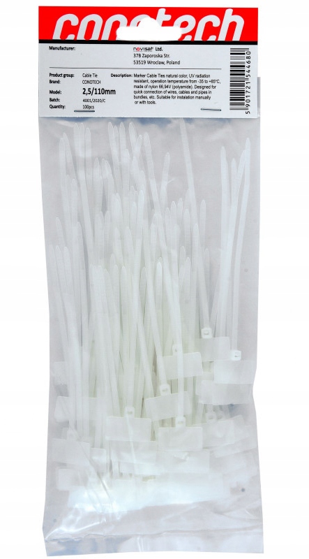 Кабельна стяжка 2,5x110 мм біла з табличкою з описом, 10 шт.