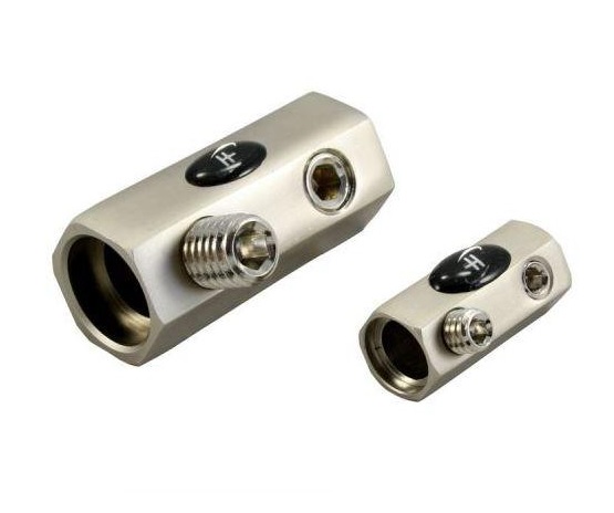 гільзовий з'єднувач для подовження силового кабелю перетином 21мм2 - кріплення кабелів гвинтами з шестигранником, платиново-матовий