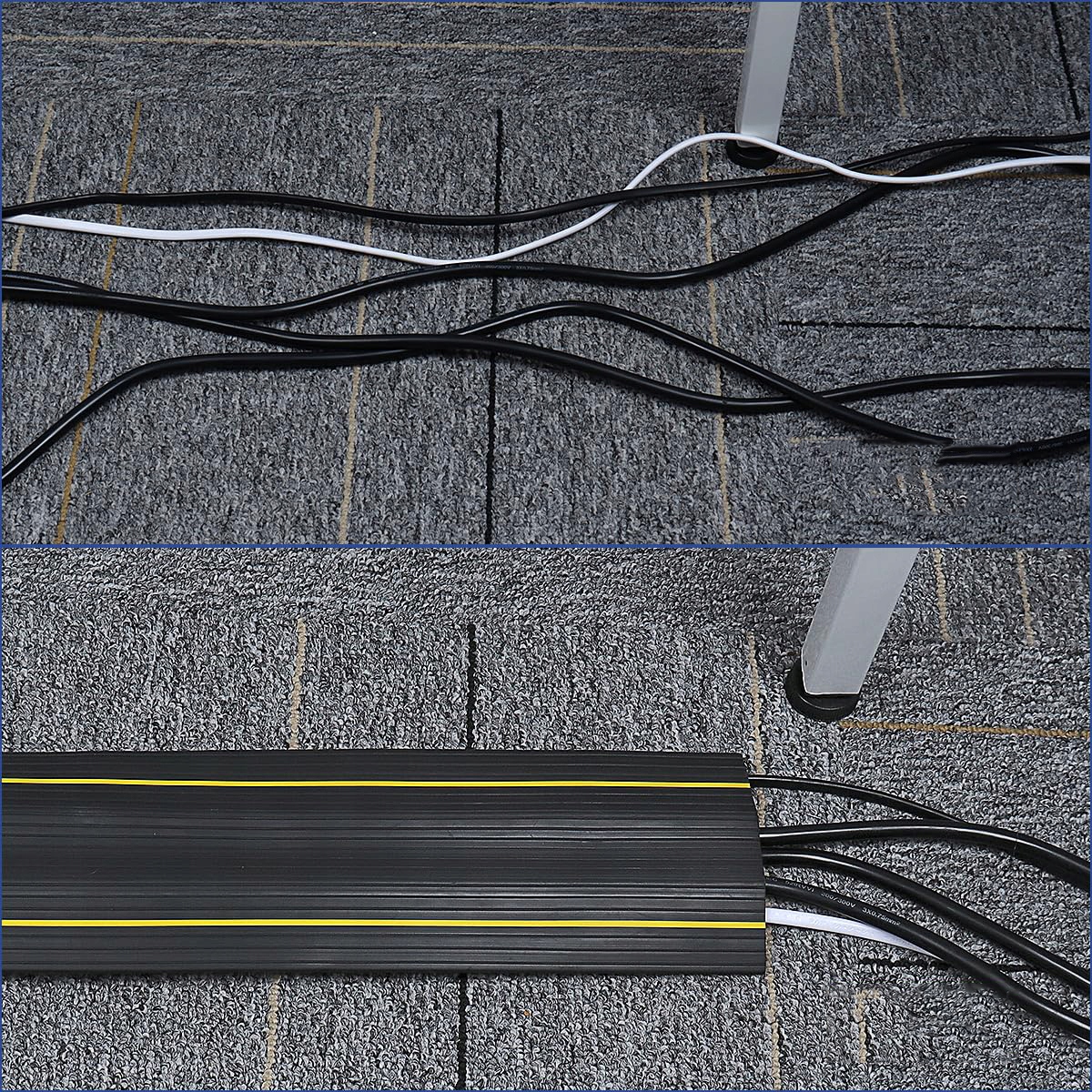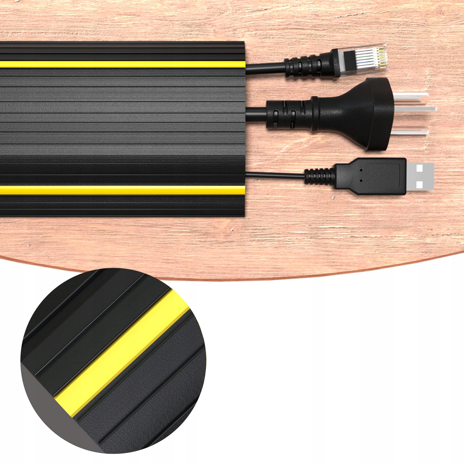 Дві яскраво -жовті смуги проходять через верхню частину кришки кабелю підлоги, щоб підвищити видимість та безпеку. Вони служать попередженням, щоб попередити людей з прикриттям і запобігти випадковій спотикання. будинки, офіси, семінари, склади, концерти або в будь -якому іншому зовнішньому середовищі.