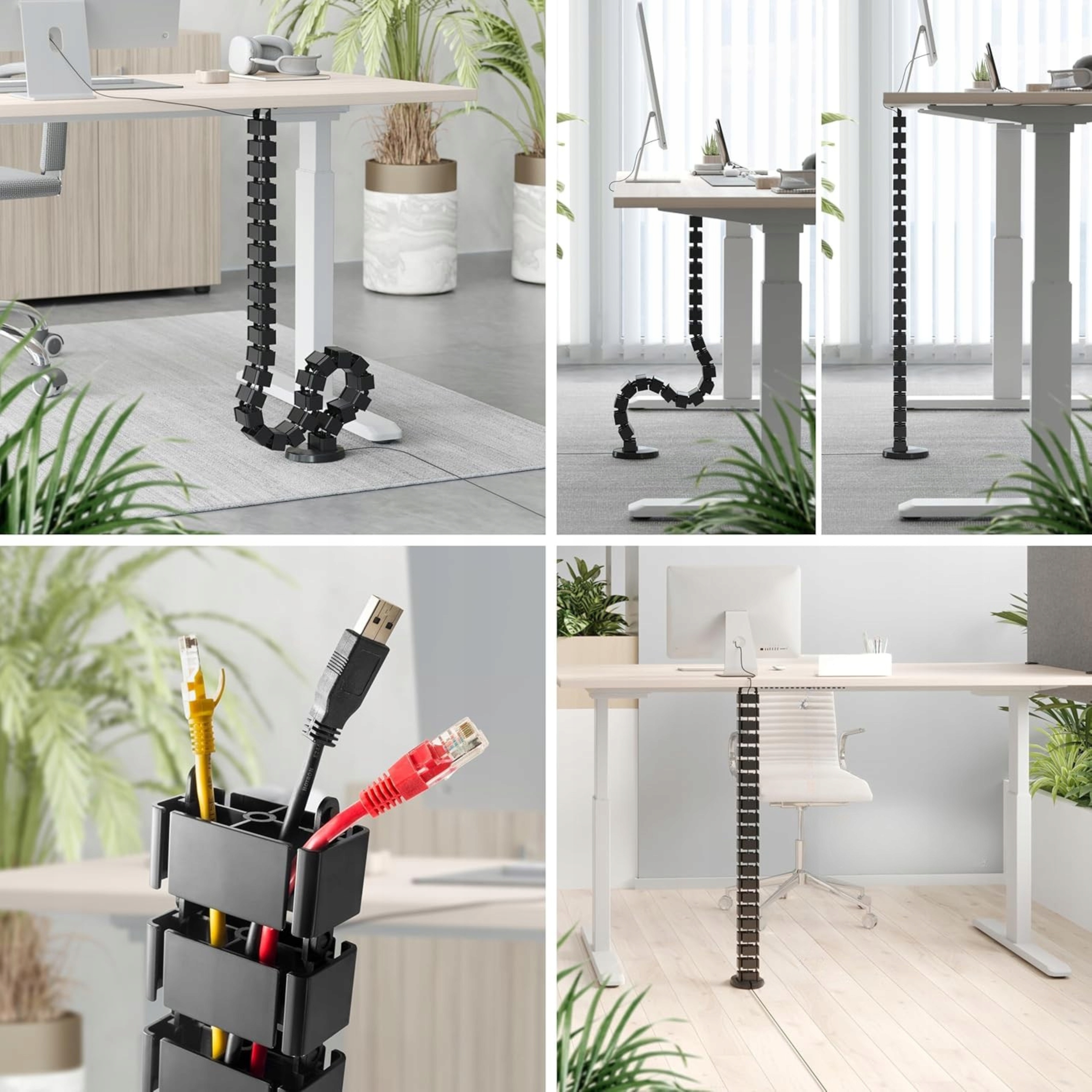 Досить, щоб організувати кабелі від столу до підлоги або вздовж стіни. Можливість вкоротити елементи для налаштування довжини відповідно до ваших потреб.